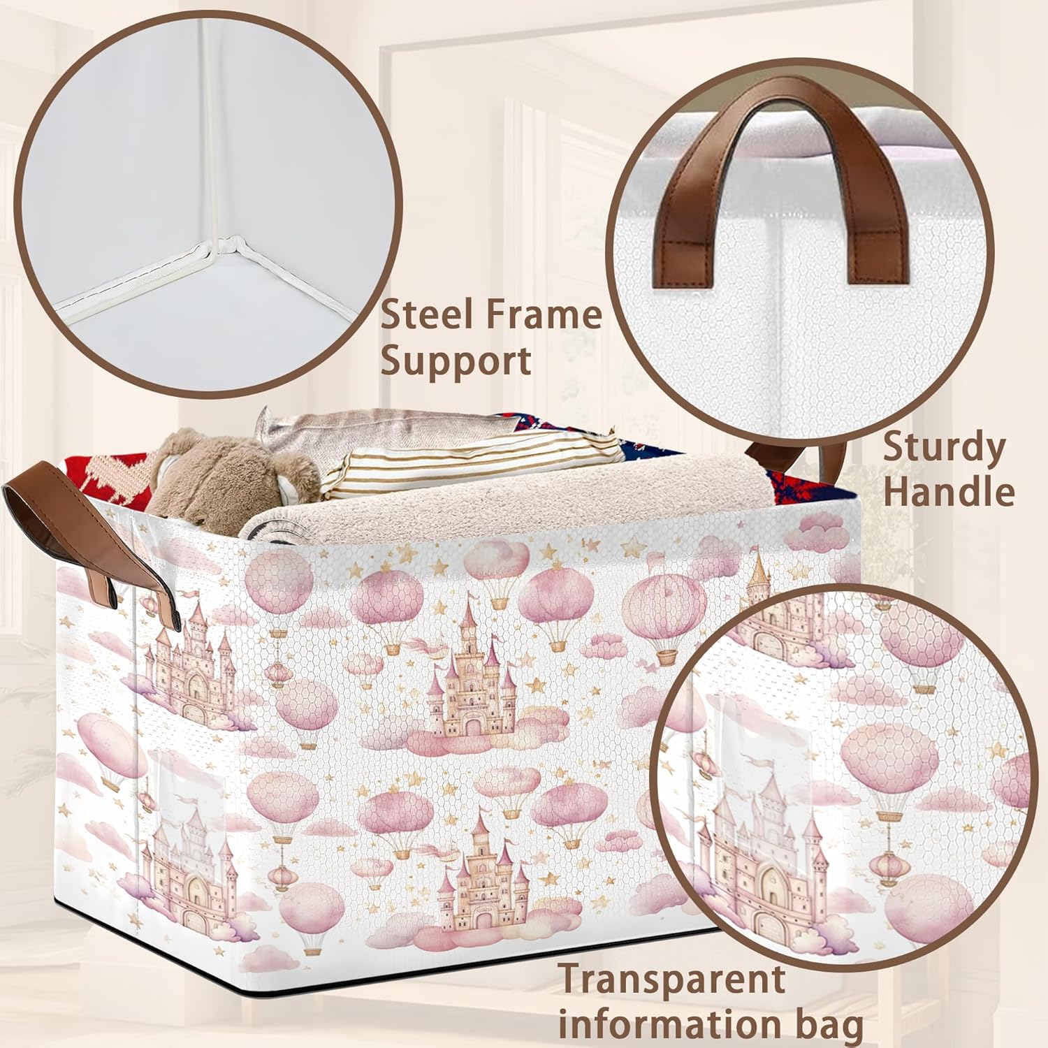 - Conveniently Within Reach: Mogifedc Castle Balloon Basket Comes With Leather Handles For Easy Transport. Each Handle Is Reinforced And Secured To The Basket With Extra-Strong Stitching,So The Basket Can Withstand Heavy Loads. Each Of These Soft Handles Ensures a Comfortable Grip,Making Housework a Breeze.
