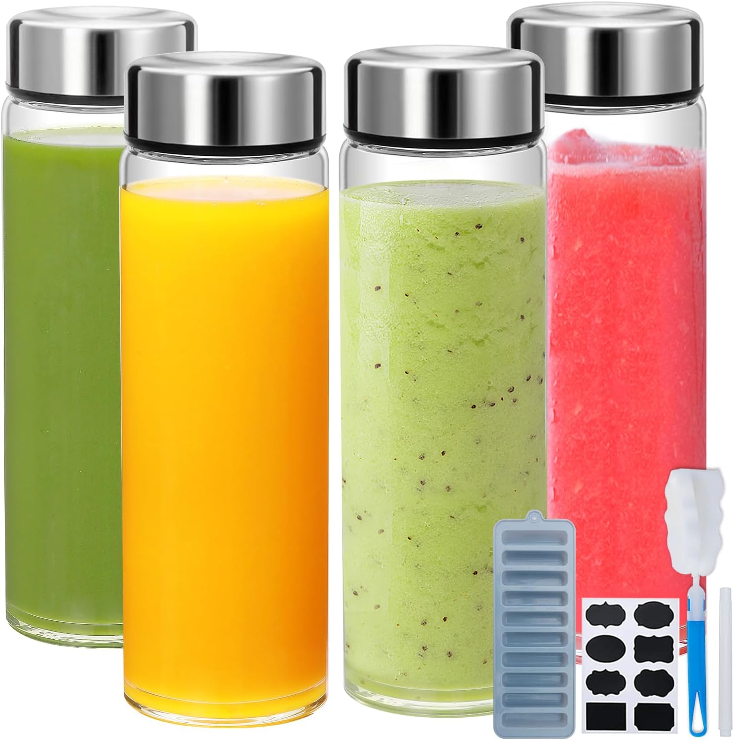 - Premium Glass Quality:Food-grade borosilicate glass bottles with lids. BPA & toxin-free. Keeps juice pure & fresh.