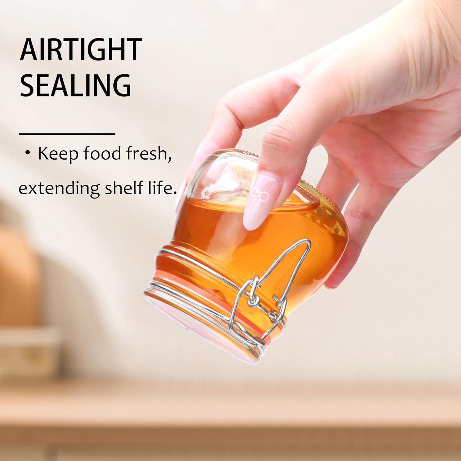 5oz 6pack Glass Jars with Airtight Lid, Glass Food Storage Containers with Lids, Mason Jars, Wire Clip Fastening for Cereal, Flour, Cookie, Spice, Honey, Kitchen Canning