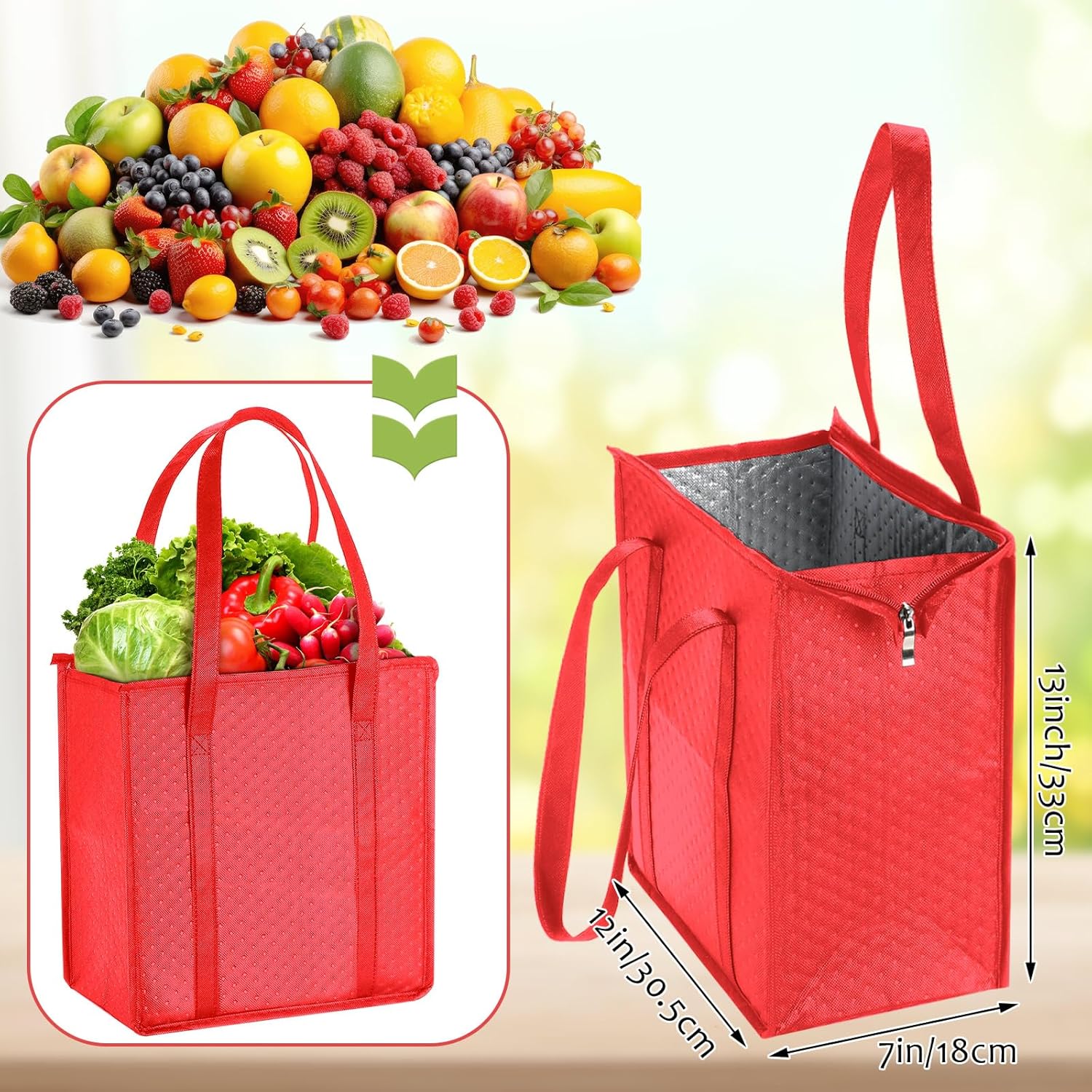 - Large Capacity: measuring at 13 x 12 x 7.1 inches/ 33 x 30.5 x 18 cm, these insulated reusable grocery bags offer ample space for a variety of items whilst maintaining a compact and portable size for use