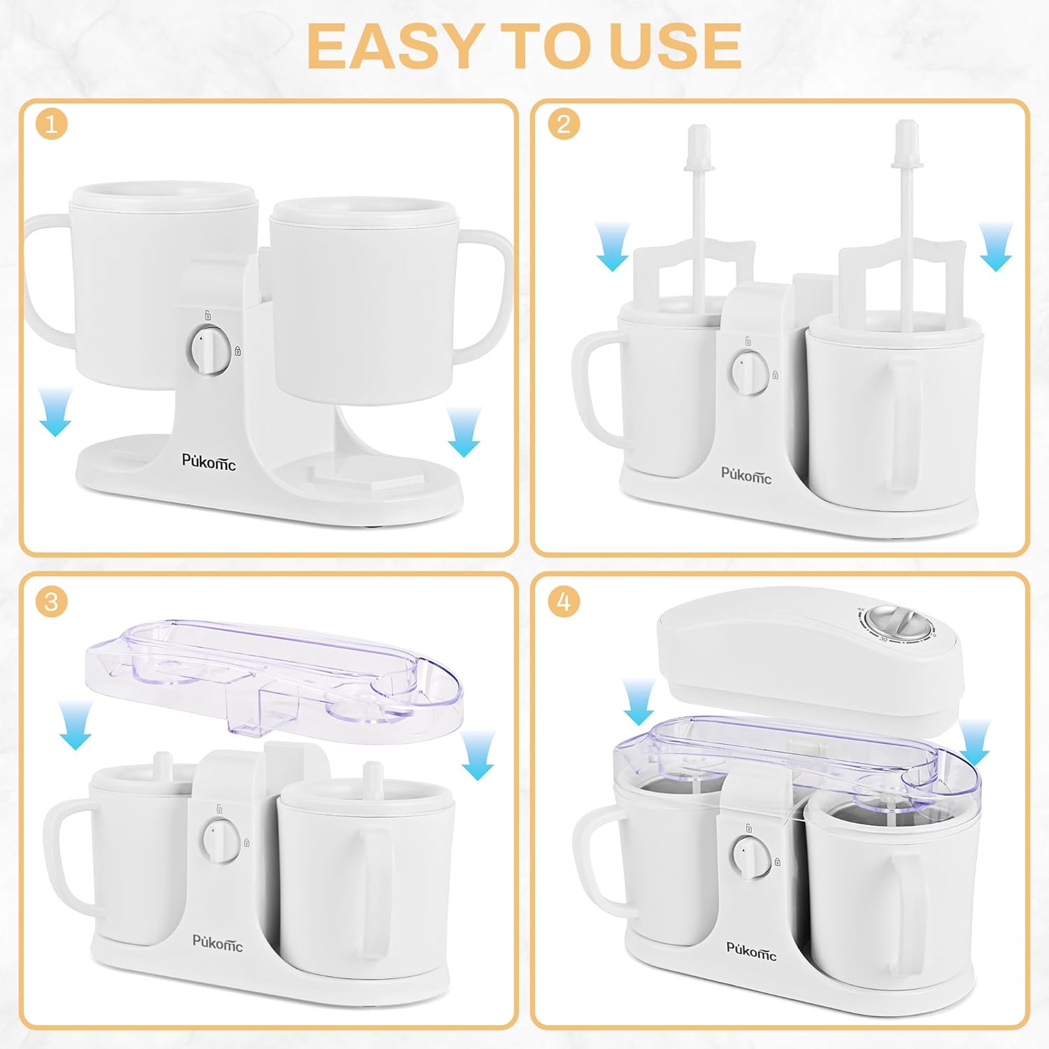 Pukomc Ice Cream Maker Machine for Home Use, with Two Ice Cream Bowls,Simple Operation and Easy to Clean,White
