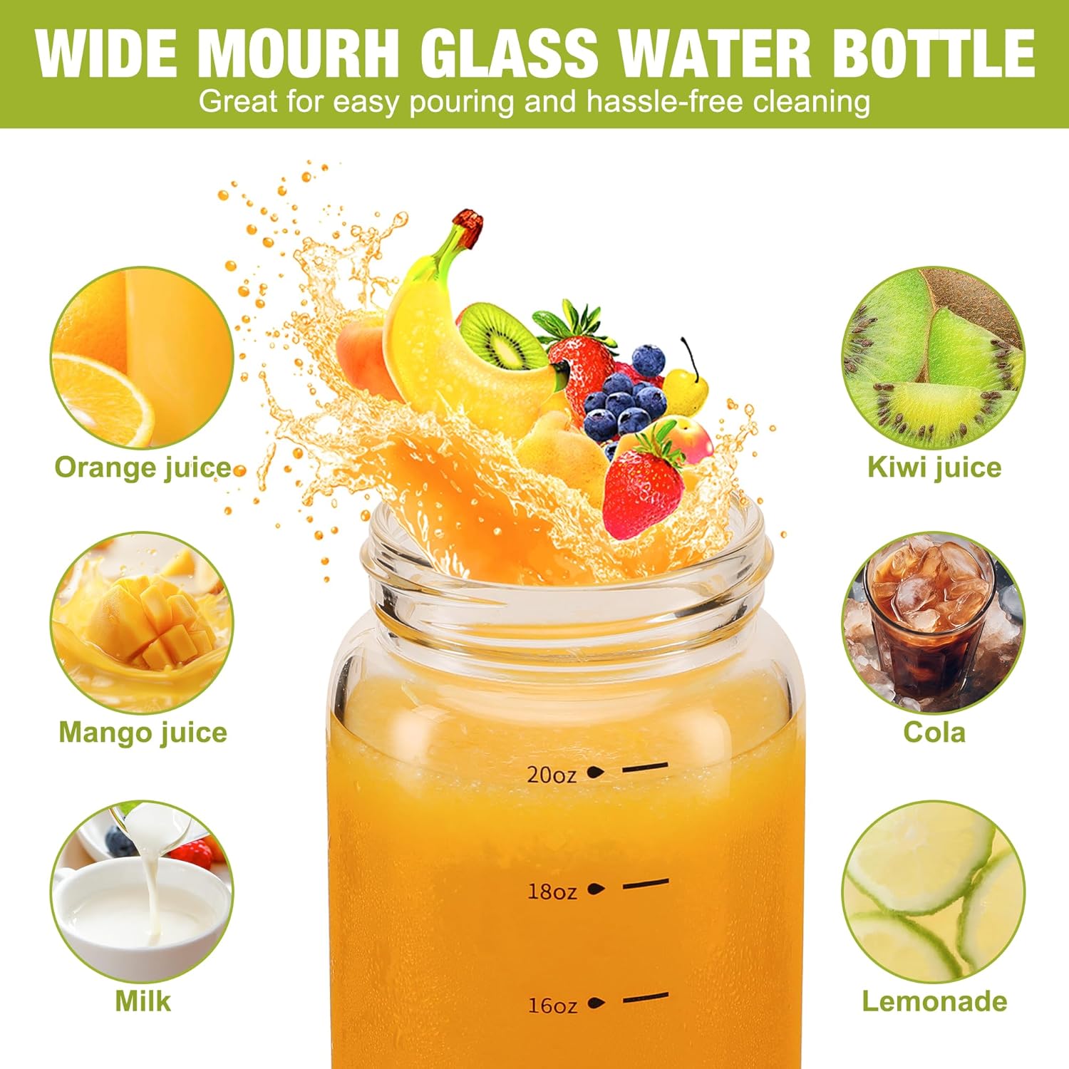 - REUSABLE & GIFTABLE SET: Say goodbye to disposable plastic bottles. These stylish and durable glass bottles are perfect for juicing, water, cold brew, kombucha, or tea—making them a great gift for health-conscious friends or yourself.