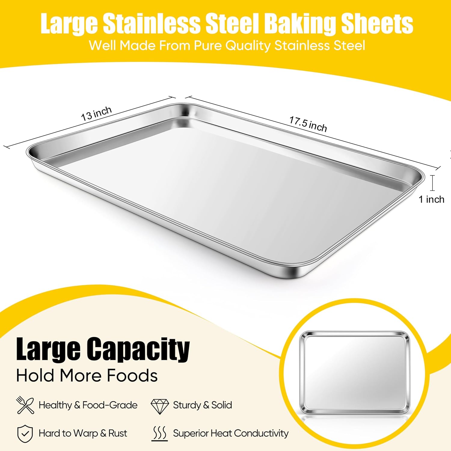 - Versatile baking, 18 x 13 x 1 inch half sheet pans fit most regular toaster ovens, large flat baking cookie tray great for sweet or savory baking, perfect for cooking delicious dinner meals, roasting chicken, steak, baking cookies, sheet cake, pizza and more, also can be used as serving tray