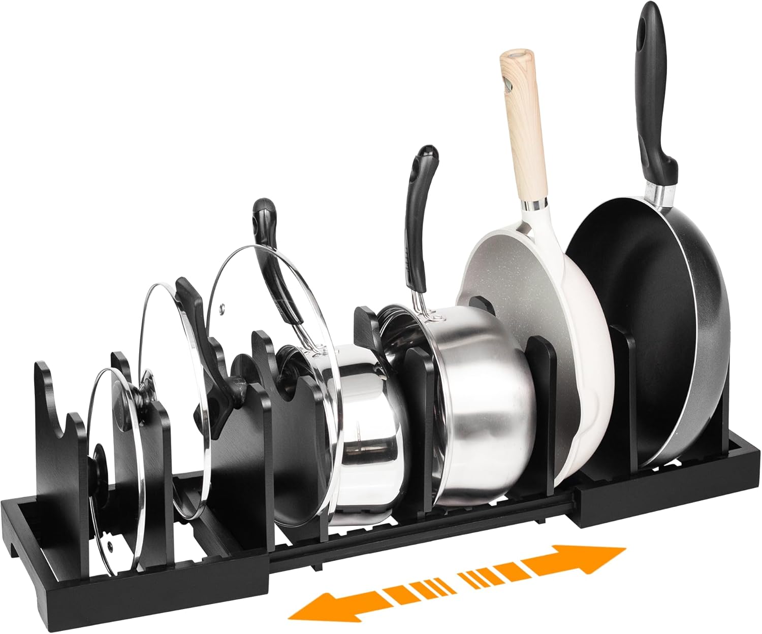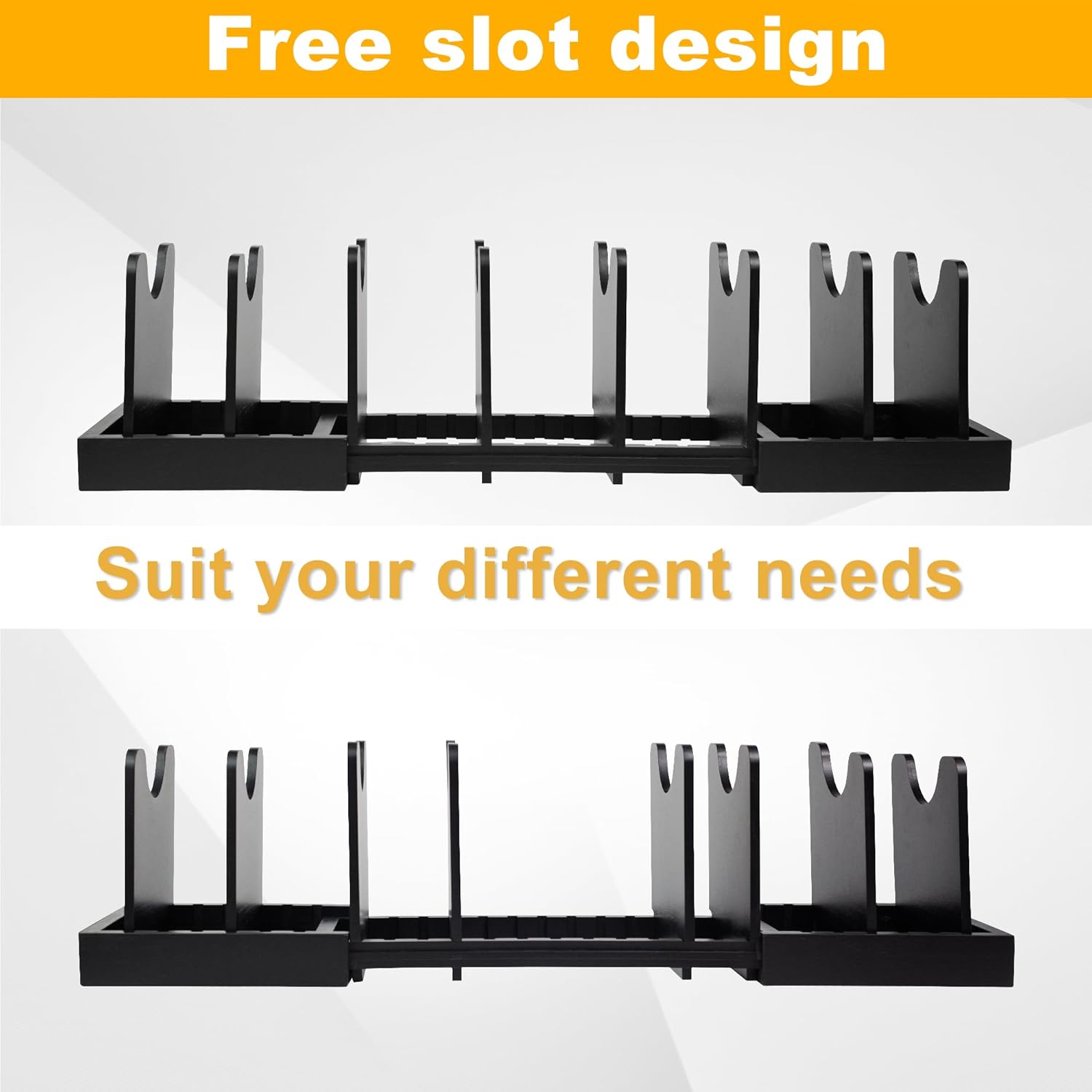 MinBoo Bamboo Expandable Pot Lid Organizer Pot Lid Holder, Pot and Pan Organizer Drawer Organizer for Pot Lids, Adjustable Dividers for Kitchen Cabinet Organizers and Storage,Black,Large