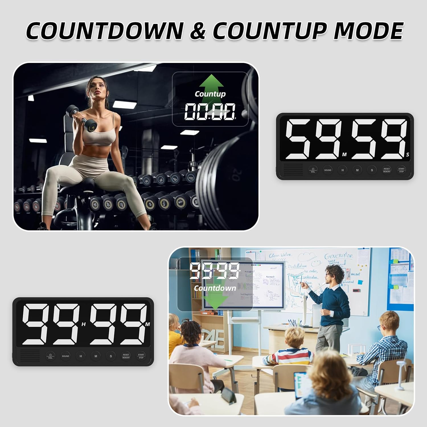 - Extra Large Display --- PULIVIA extra-large display timer is with a 7.4” LED screen, clear and 2.2in tall big digits allows it easy to read even from across a room, what a nice digital timer for kitchen, home-gym, classroom, school.