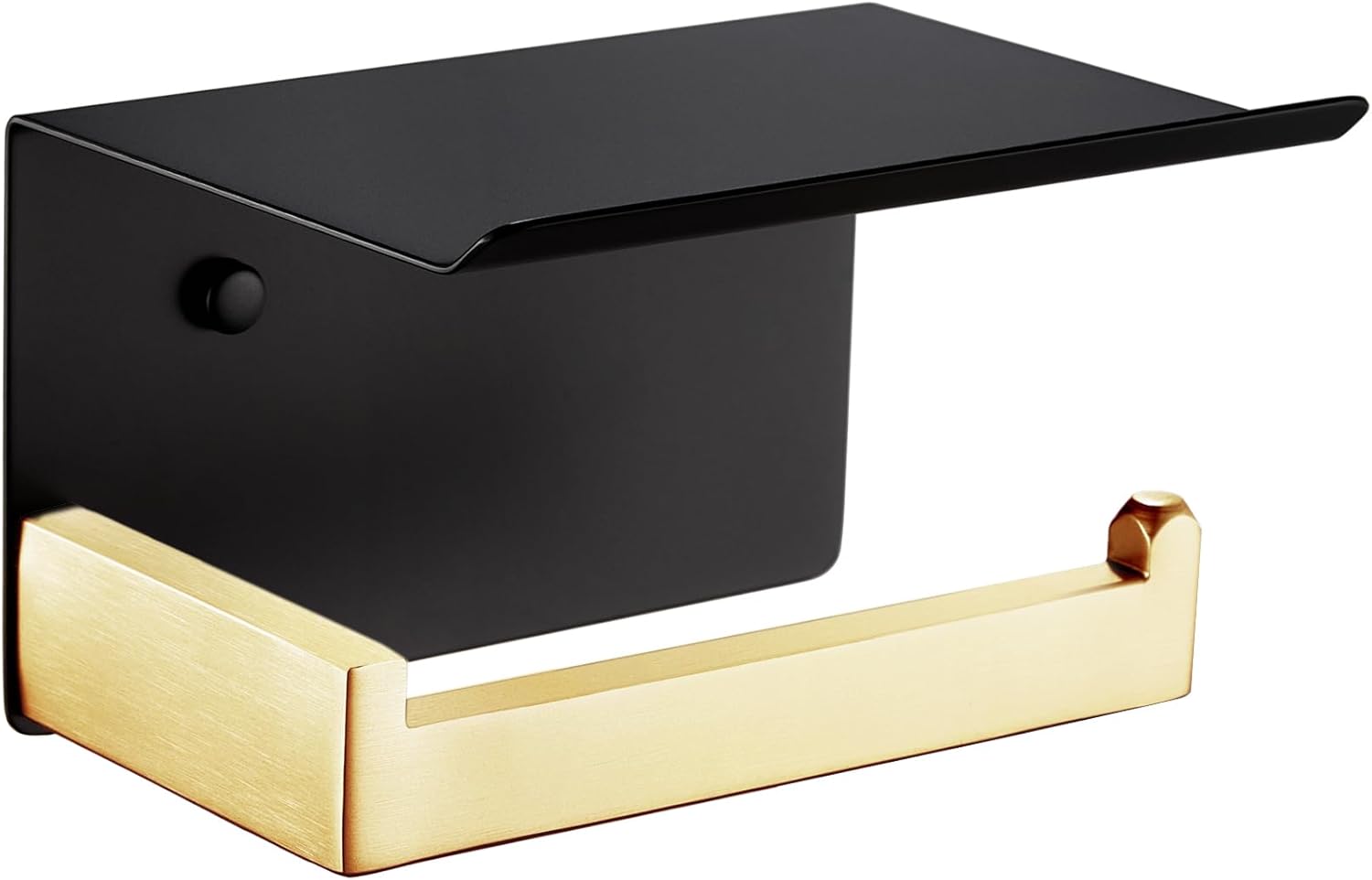 KOKOSIRI Toilet Paper Holders with Shelf Bathroom Toilet Paper Roll Holder Wall Mounted T-304 Stainless Steel, Matte Black and Gold B2010GDK