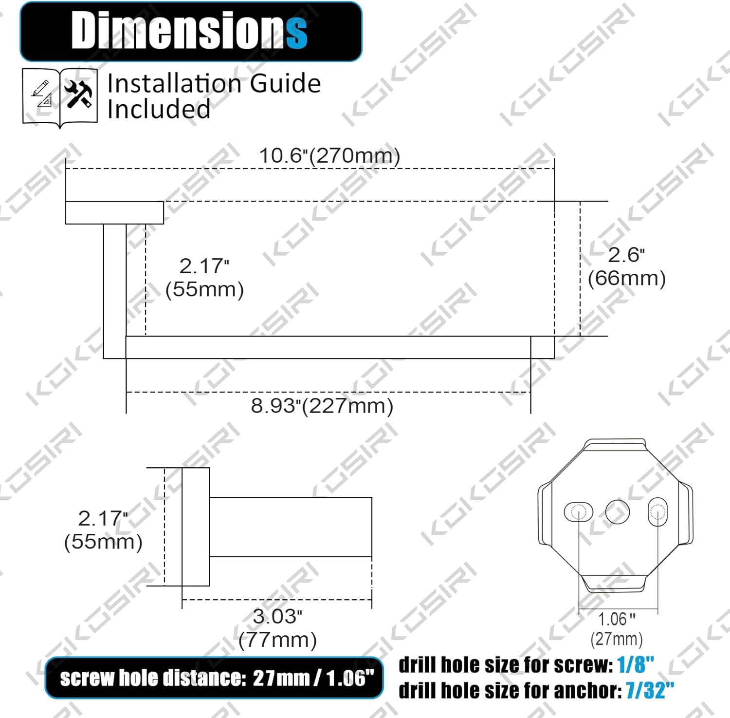- ◄ Modern Design ► KOKOSIRI Towel bar is designed with simple and clear line for durability. Concealed screw installation provides a elegant look and high-end style for your bathroom and kitchen. Suitable to hold hand towel or kitchen paper roll