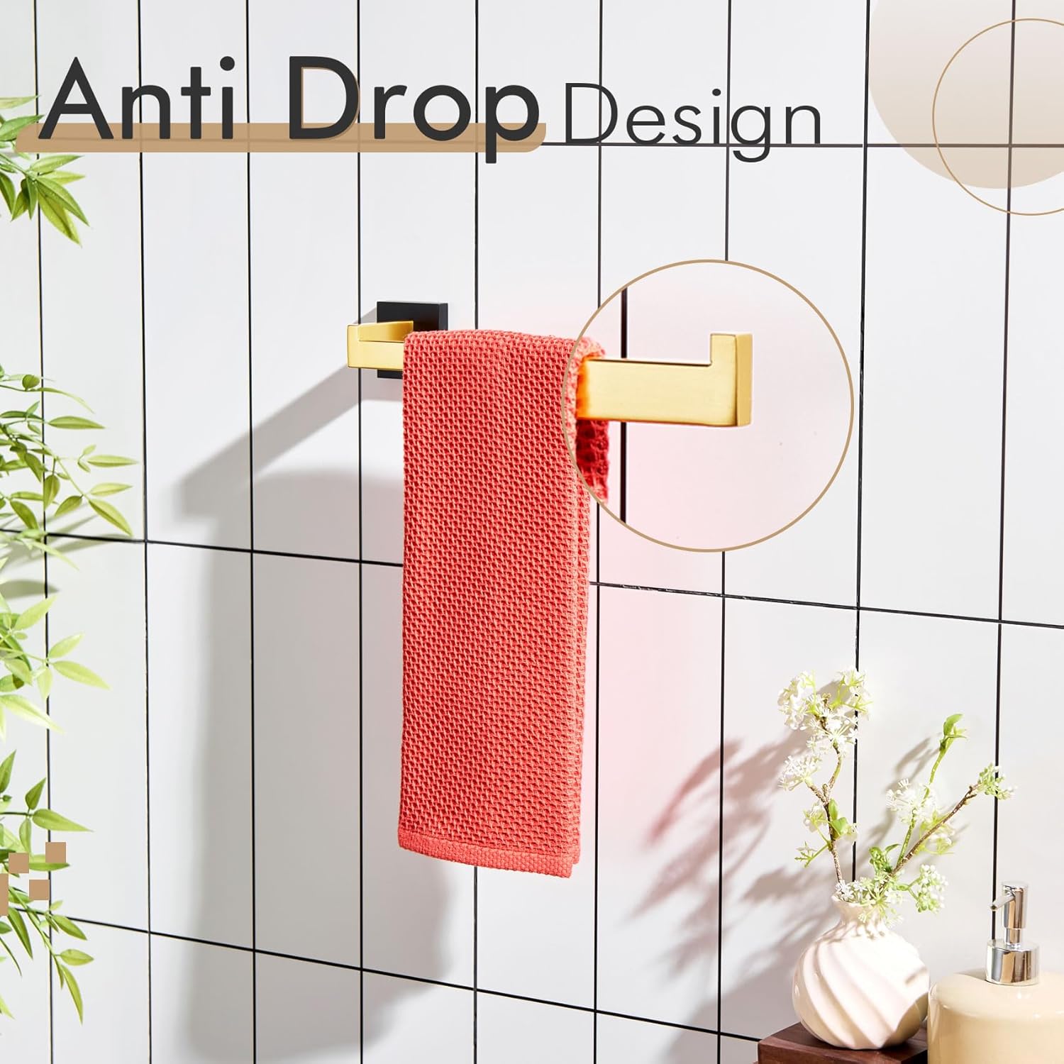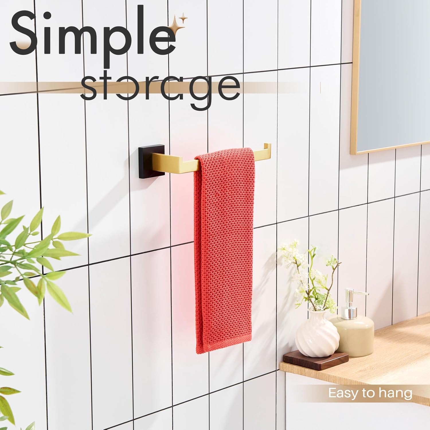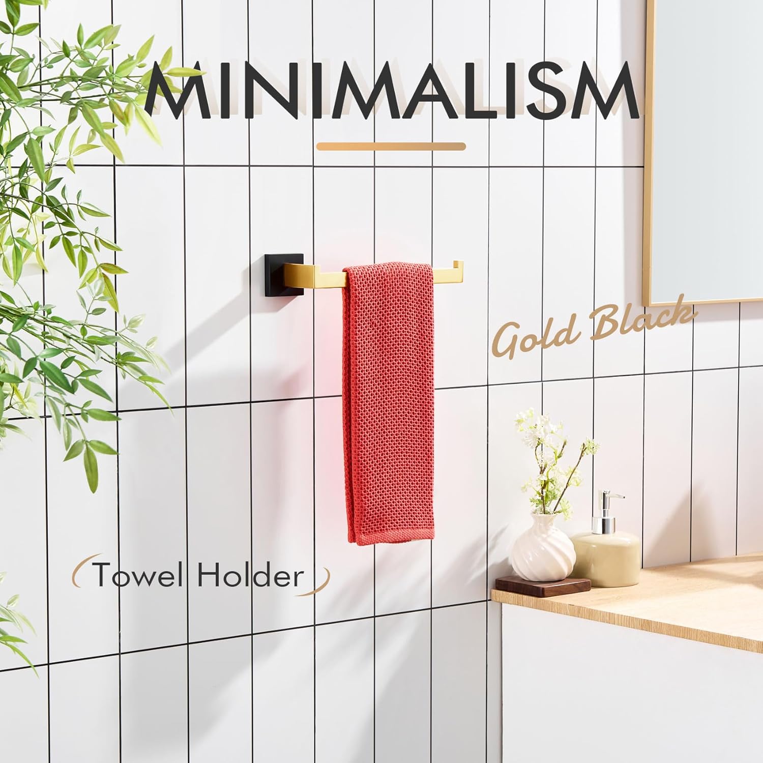 - ◄ Finish Type(Black & Gold) ► Each towel holder is produced by strictly hand crafted. The surface treatment is fingerprint-proof and smooth but not mirror-like shining finish. It can resist tarnishing and prevent scratches for daily use. Available in polished chrome, brushed nickel, matte black, brushed gold, black & gold