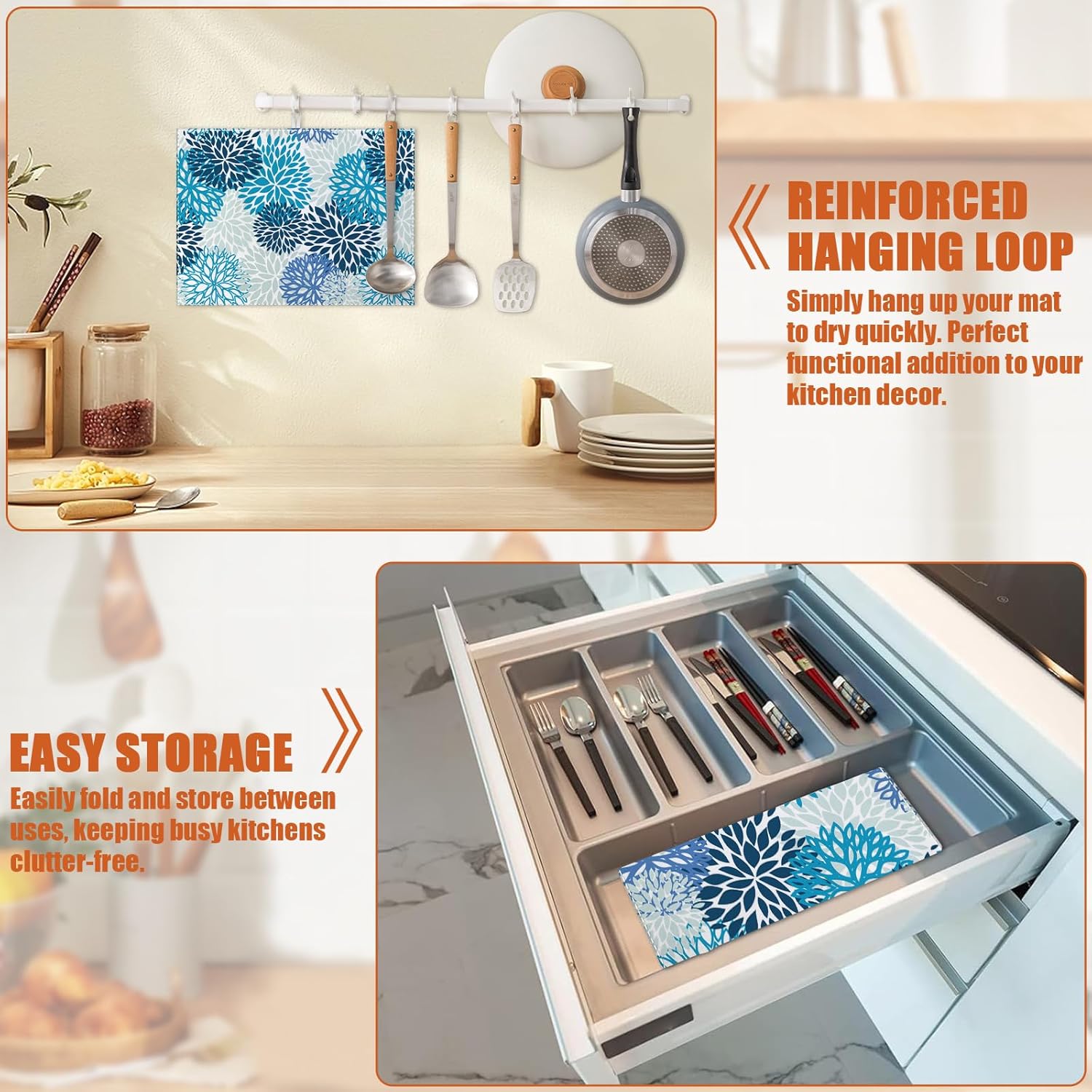 - 【Easy to Clean】The utensil drying mat can be cleaned by hand or machine to remove stains, the kitchen utensil drying mat to dry quickly without a machine. HD printed suede has excellent color lock, does not fade and can be reused many times.