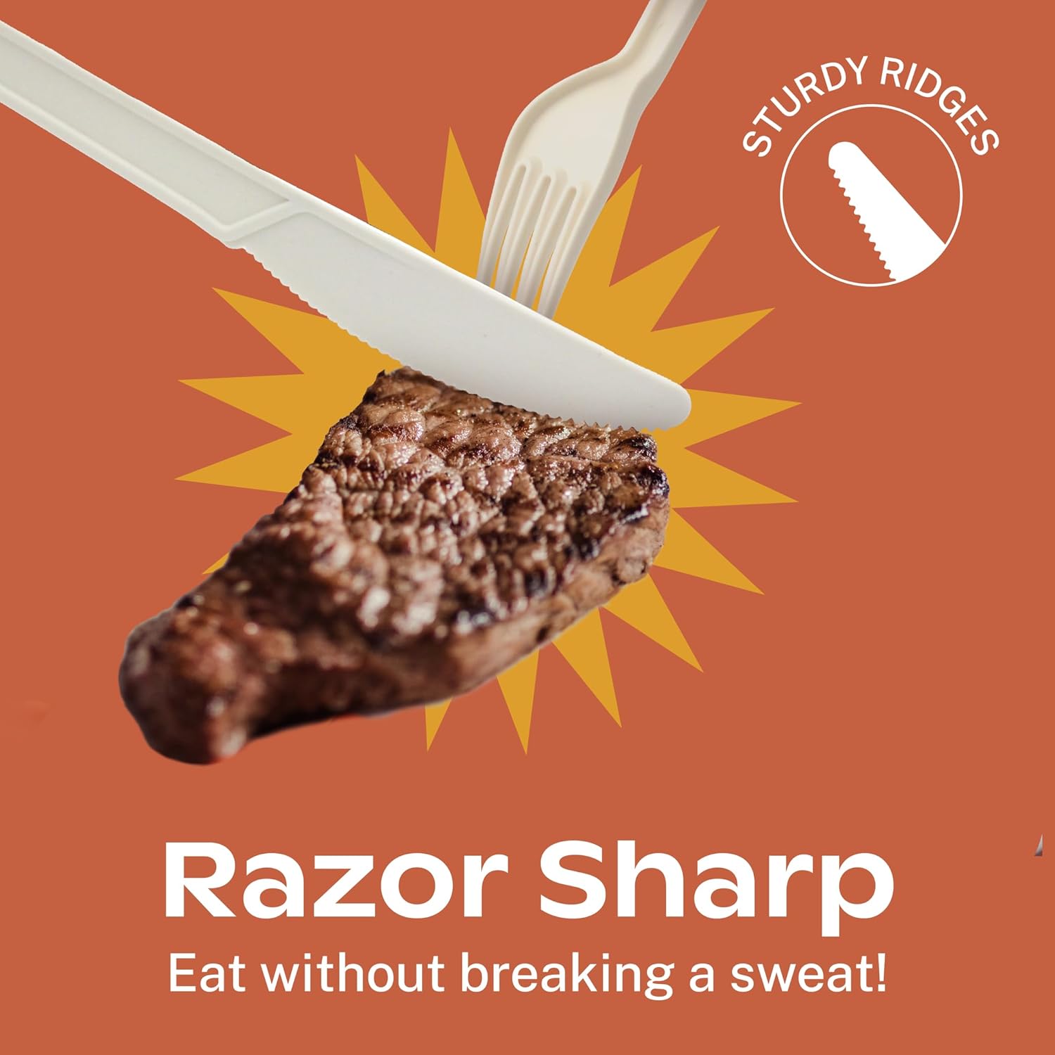 CORAL Ivory White 100% Compostable Silverware Set 340 Pieces - Heavy Duty 160 Forks, 120 Spoons, 60 Knives Bulk - Break Resistant with Smooth Edges, Ocean Friendly Alternative to Plastic Utensils