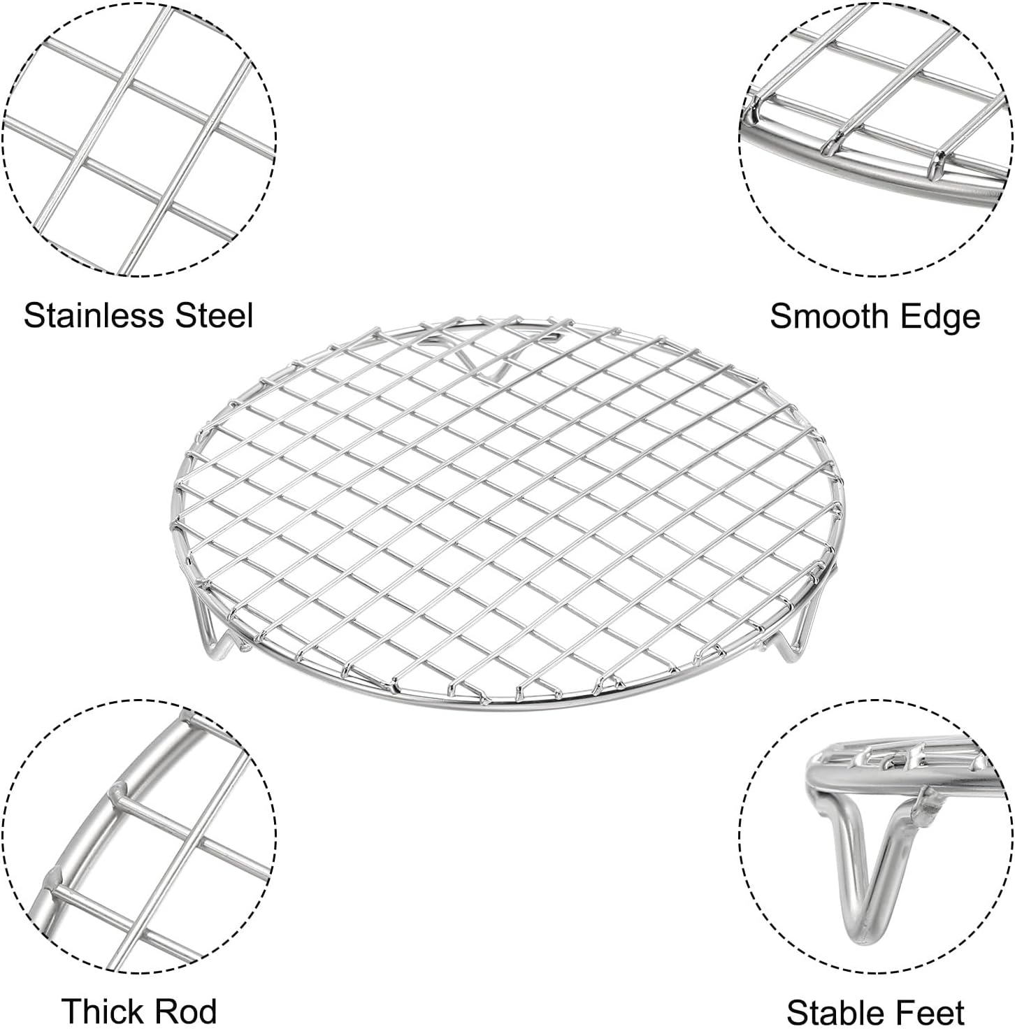 uxcell Round Cooking Rack with Legs, Dia 7.5 Inch 304 Stainless Steel Barbecue Grill for Cooking Baking Barbecue Air Fryer Racks, Silver