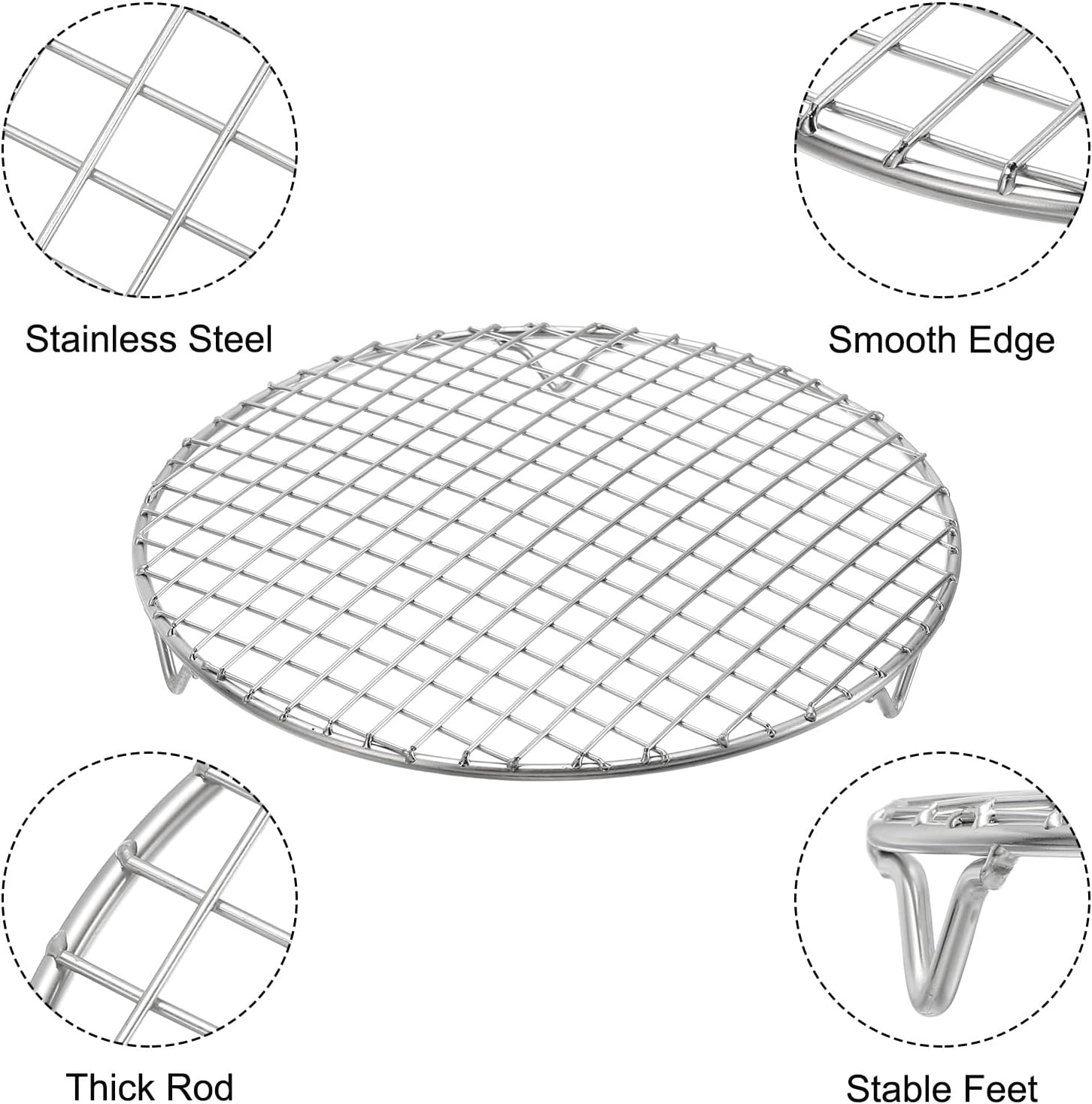 uxcell Round Cooking Rack with Legs, Dia 9.8 Inch 304 Stainless Steel Barbecue Grill for Cooking Baking Barbecue Air Fryer Racks, Silver