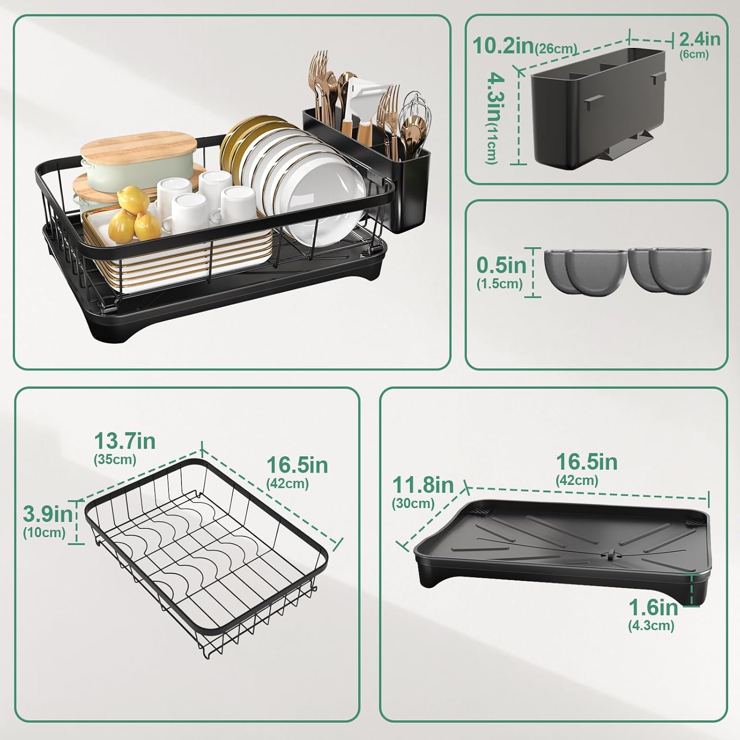 - Tool-free assembly and cleaning:HOMEAILIE Dish drainer simple,tool-free construction and 30-second installation.Removable parts and smooth surfaces allow for quick rinsing or wiping with a damp cloth
