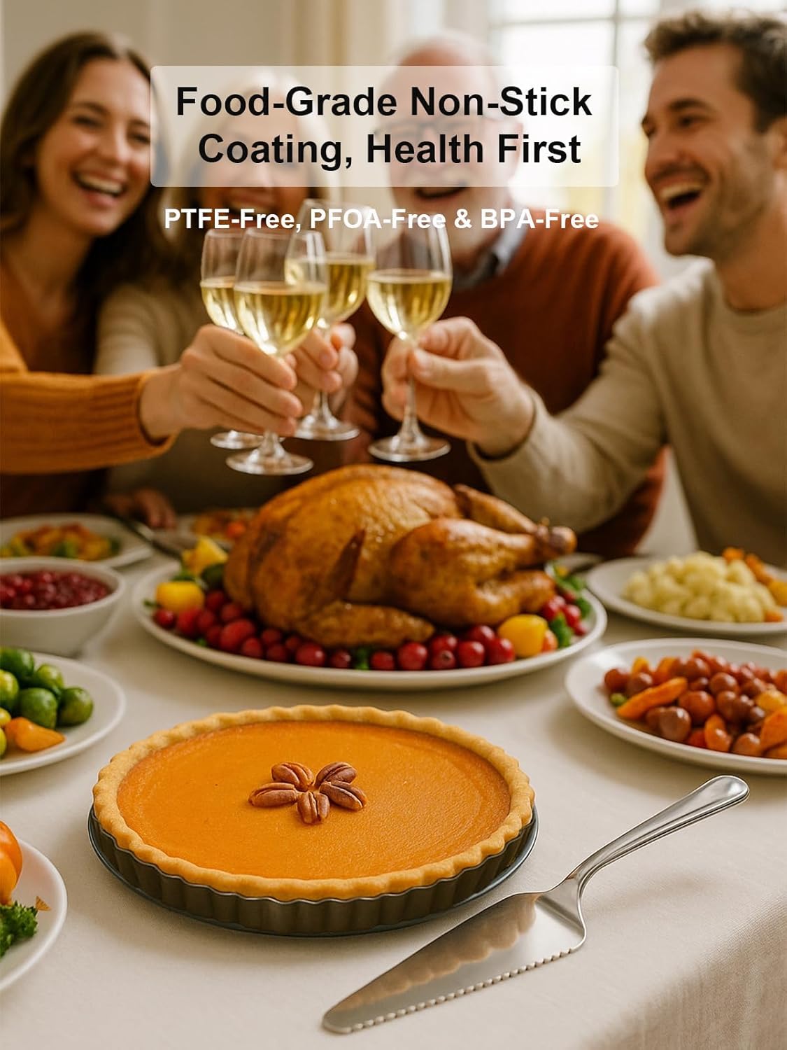 9 Inch Quiche Tart Pans with Pie Cake Server. Removable Bottom, Non-Stick Coating, Rugged Carbon Steel for Tart Quiche Baking. Gift for Women Wife Christmas Thanksgiving Party Festival Family