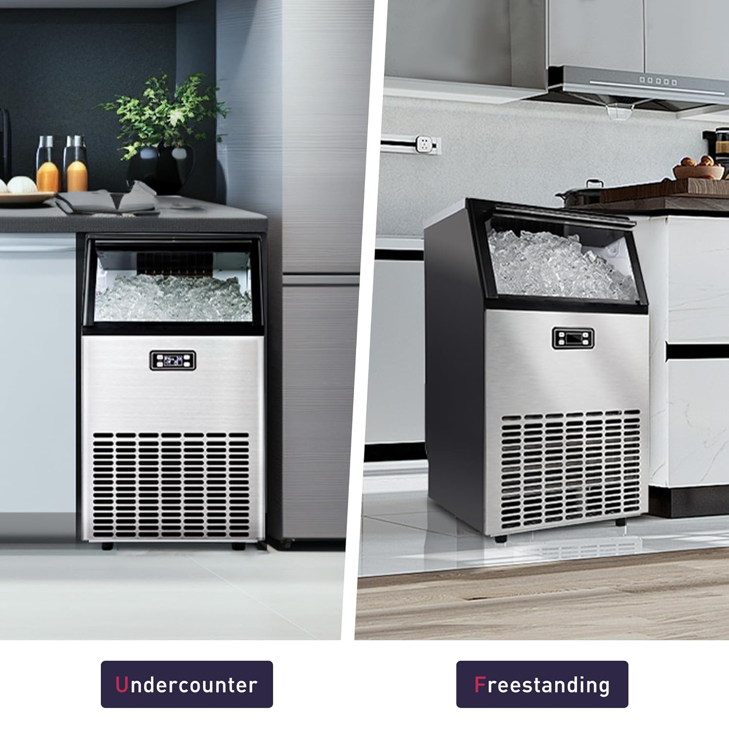 Commercial Ice Maker Machine, 100lbs/Daily Ice Production Under Counter Ice Maker, Self-Cleaning, Timer Stainless Ice Machine with 33lbs Ice Storage, Ideal for School, Home, Bar, RV