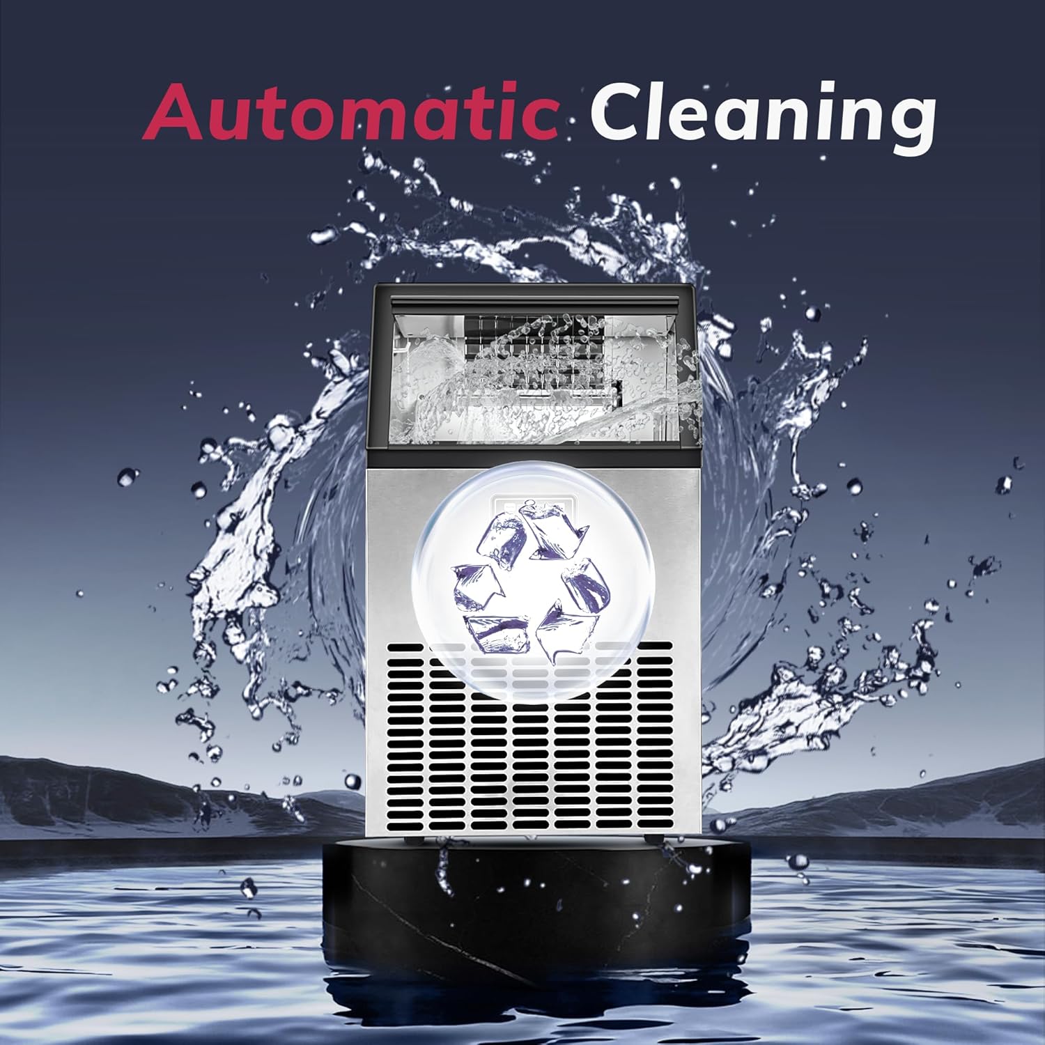 - Easy Cleaning for Longevity: To promise optimal performance and extend the life of your ice machine maker, we recommend daily water draining via the small hose on the water tank's right side. Remember to keep the ice machine upright for at least a day before its first use, and use the "Timer Clean" function to run two cleaning cycles. Regular cleaning will not only keep your ice fresh but also make sure the longevity of your commercial ice maker