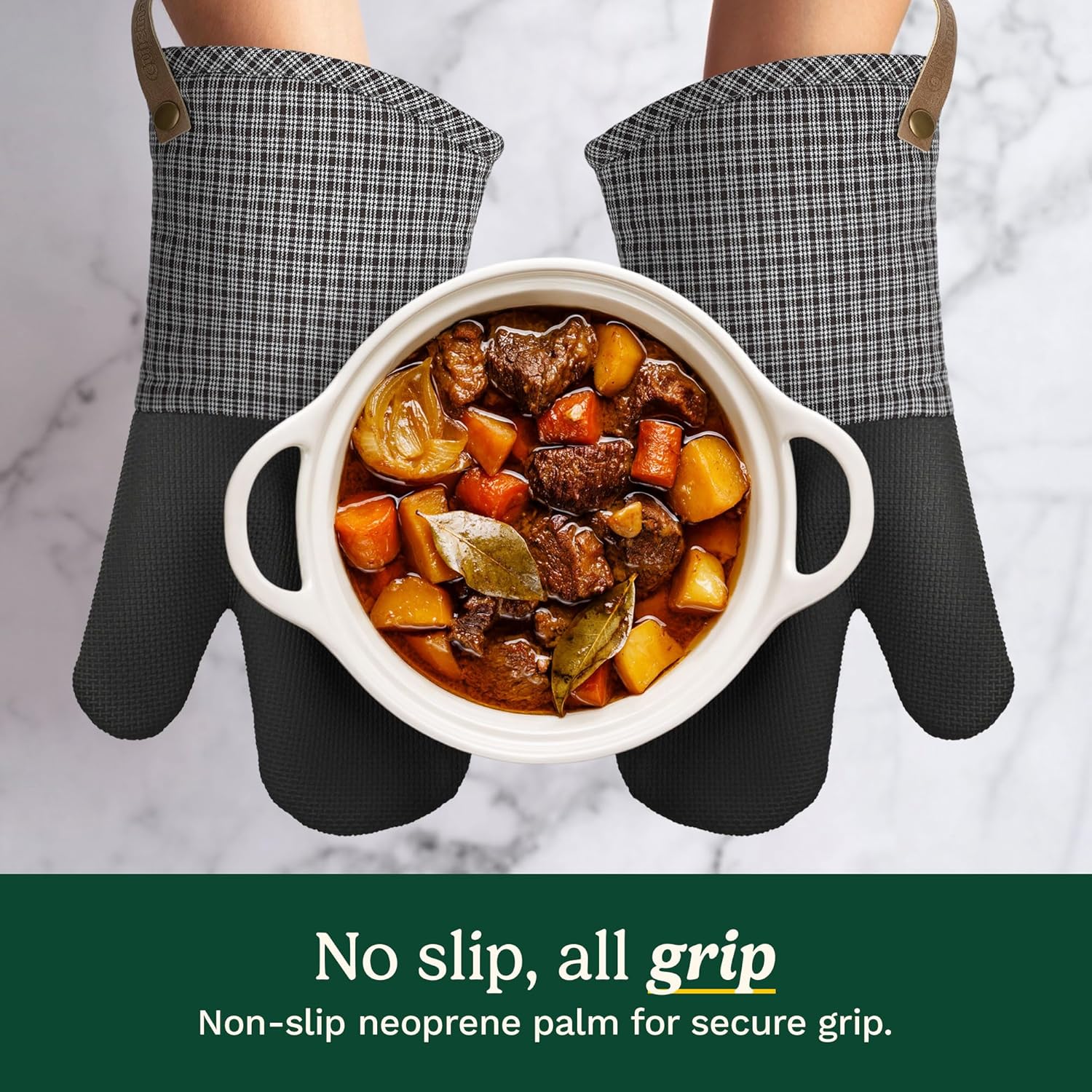 - BAKE SAFELY WITH LONG CUFF: Designed with an extended cuff to protect your wrists and lower forearms from burns; these oven mitts are perfect for safely reaching into the oven and handling hot trays or dishes, making them an essential part of your kitchen oven mitt set.