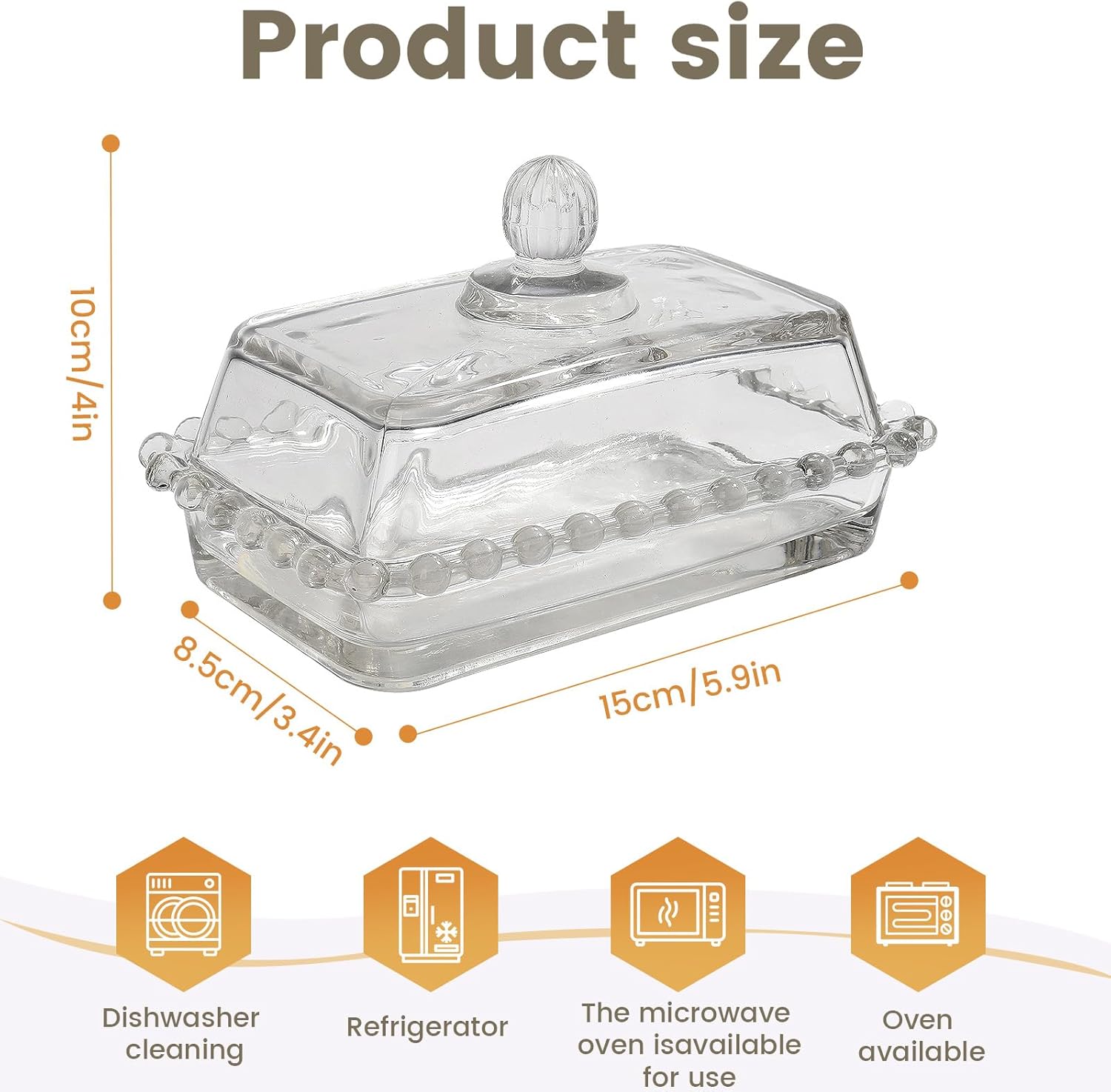 - 【Premium Material】: The glass butter dish is made of high-quality heat-resistant glass, does not contain BPA, and can be used for a long time at a high temperature of 1400℉, or it can be placed in the refrigerator for a long time at -22℉, so that you and your family can use it with peace of mind every time.