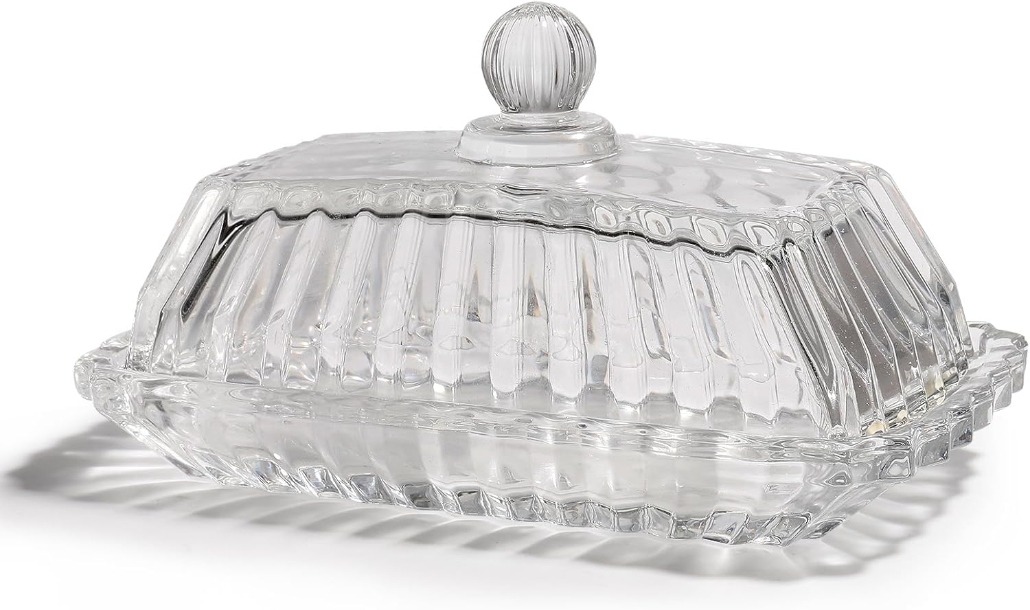 Glass Butter Dish with Lid for Countertop,Vintage Crystal Butter Container for Counter,Covered Glass Butter Keeper,Butter Tray for Refrigerator,Butter Holder with 4oz Butter