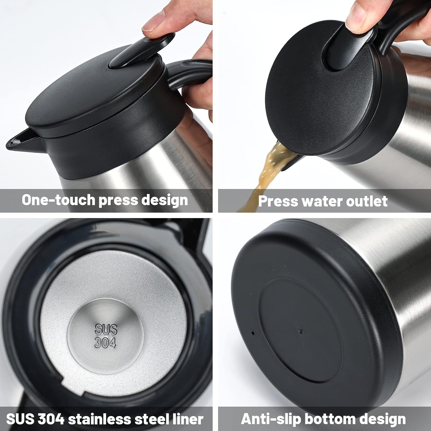 - 12 HOURS HOT & 24 HOURS COLD | This coffee carafe use the insulated vacuum and double walled interior and exteroir technology,ensure that the innner temperature can keep the hot for 12 hours and cold for 24 hours,it can locks in temperature for any beverages and preserve flavour and freshness on any ocaasion.