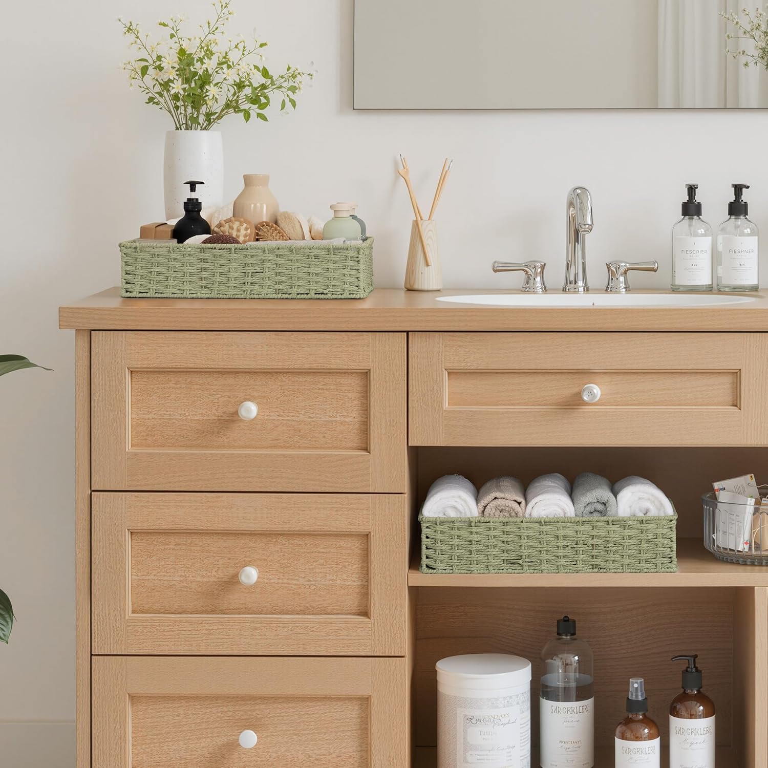 StorageWorks Bathroom Vanity Tray for Countertop, Bathroom Counter Tray for Decorative, Toilet Paper Baskets, Green, Larger, 2 Pack