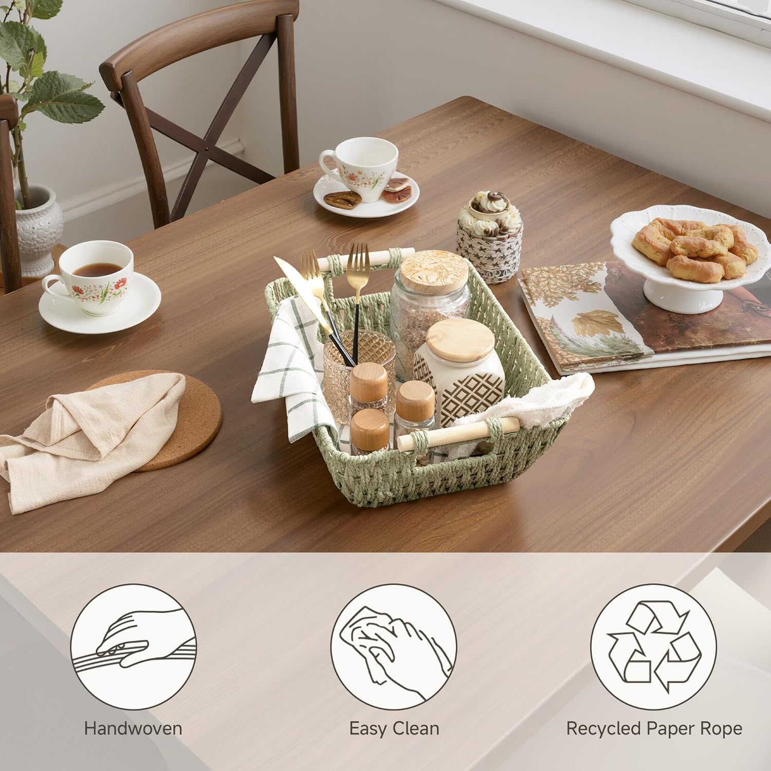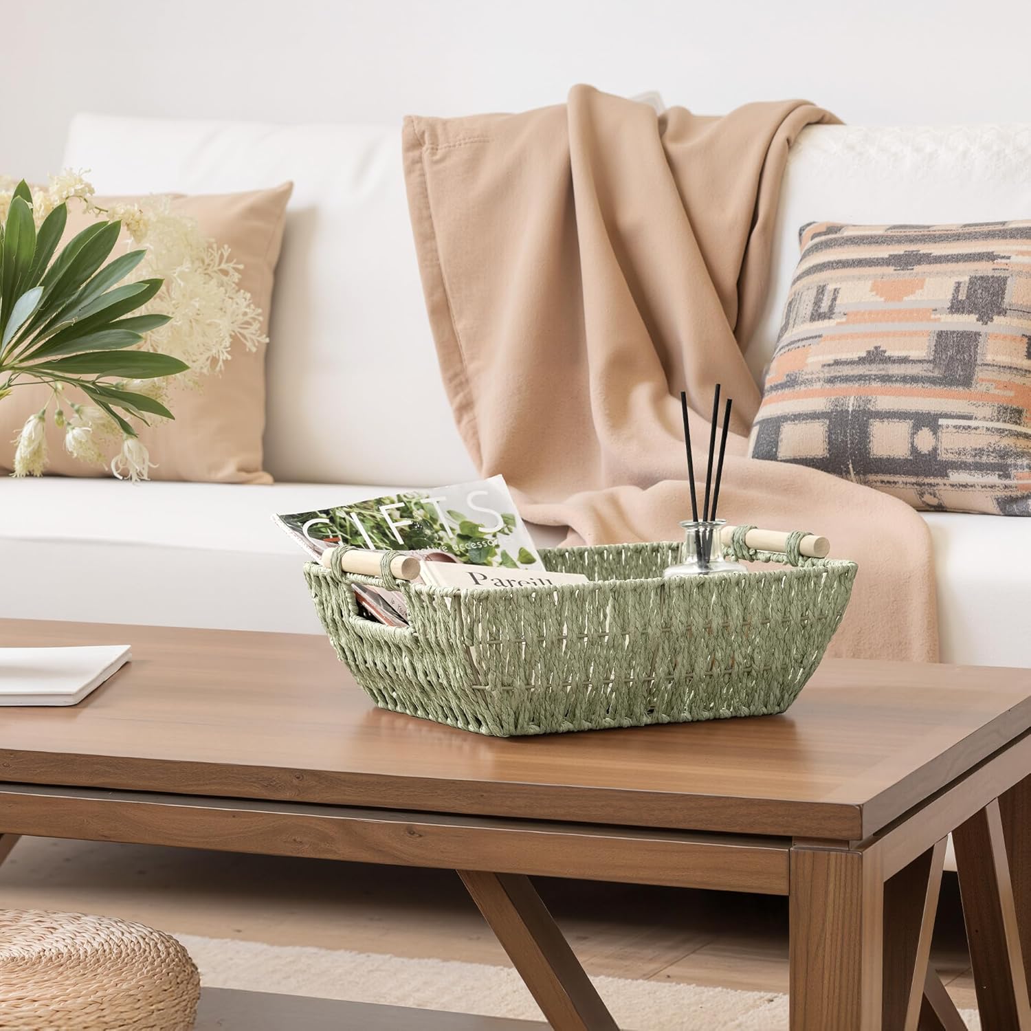 StorageWorks Large Wicker Storage Basket for Organizing with Wooden Handles, Toilet Paper Baskets for Bathroom, Bosana Green, 2-Pack
