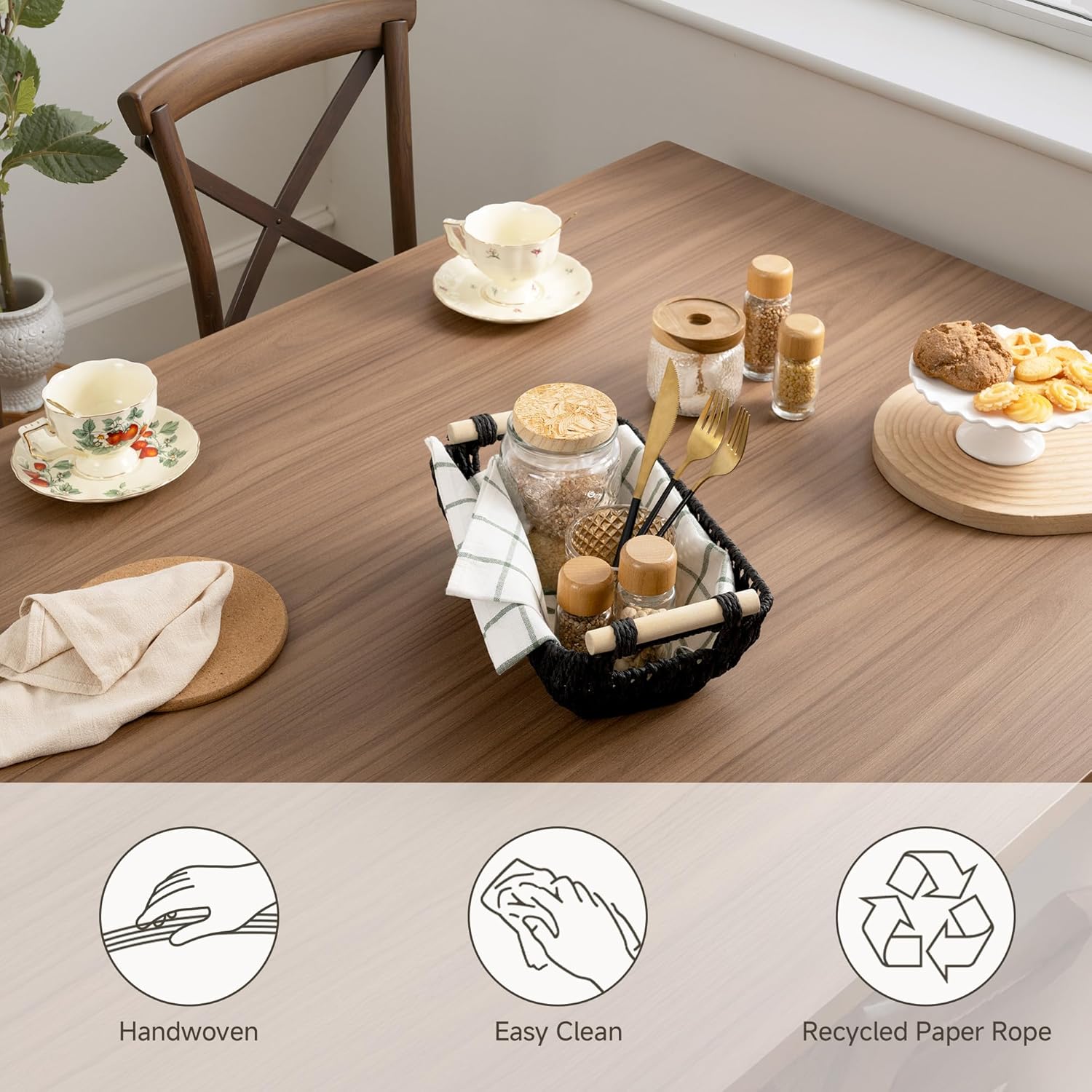 - Recycled Material: Made from durable, recyclable paper rope, designed for long-lasting use and easy recycling, combining storage functionality with a commitment to a low-carbon lifestyle.