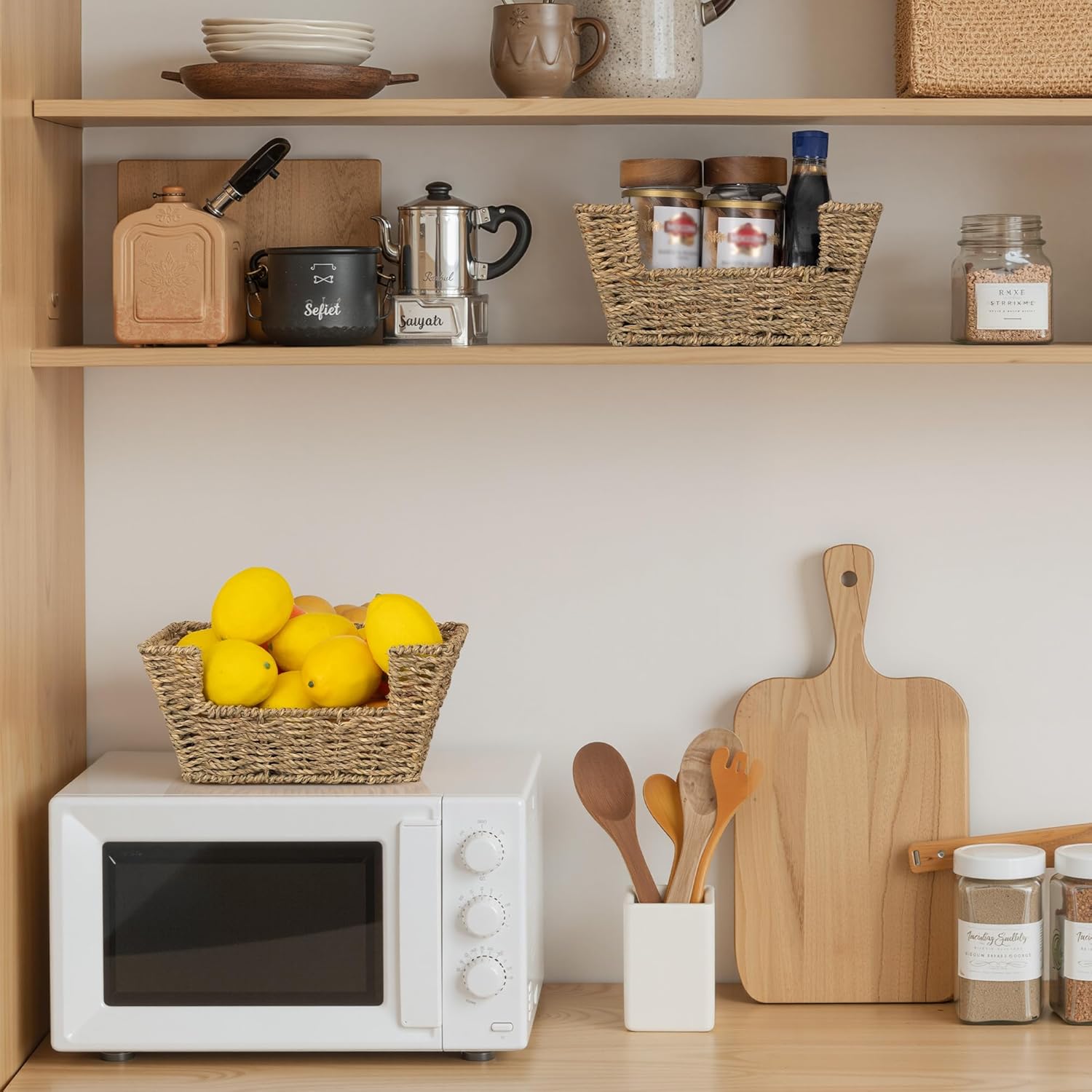 StorageWorks Small Pantry Baskets for Patato and Onion Storage, Wicker Baskets for Organizing with Built-in Handles, Seagrass Pantry Organizers and Storage for Kitchen Shelves, Countertop, 2 Pack