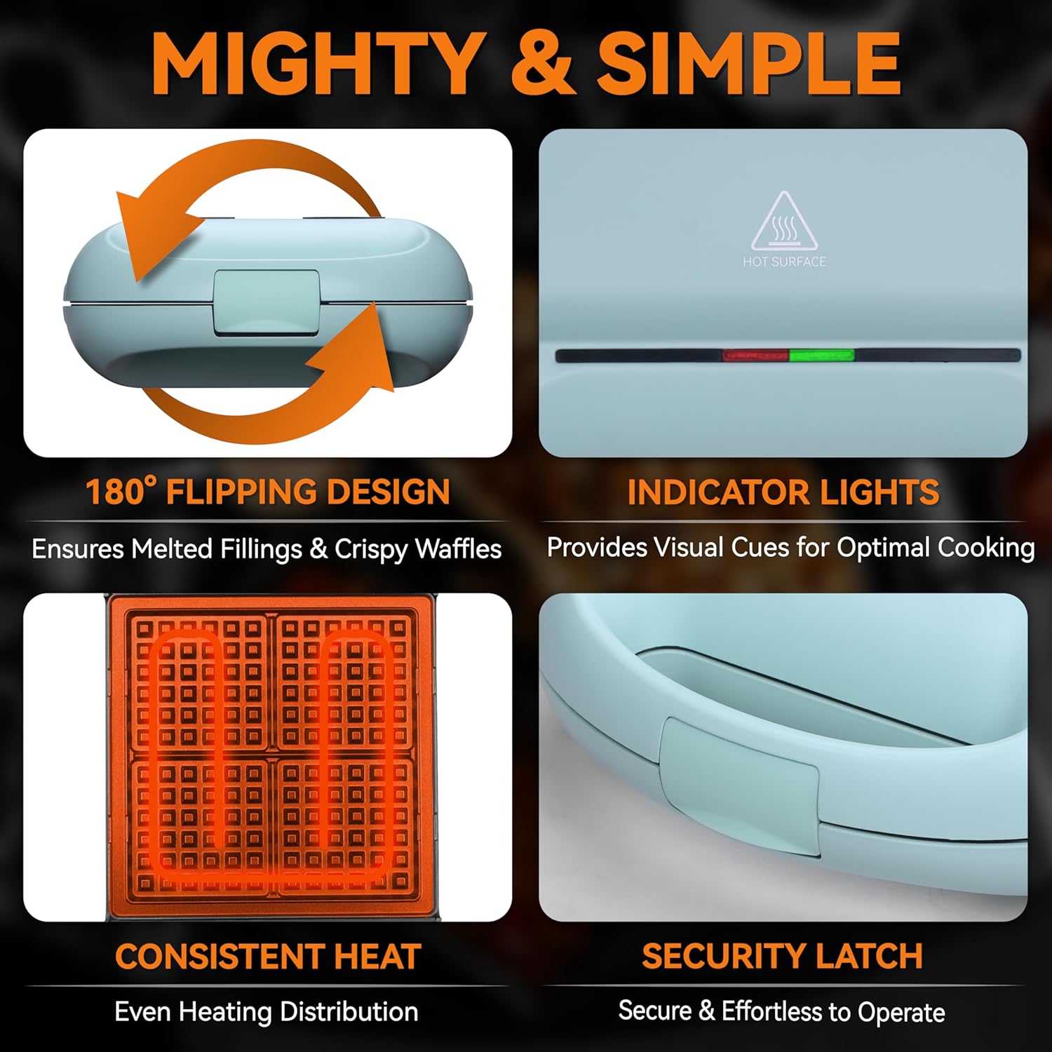 - [Family-Sized Capacity]: This Belgian waffle iron boasts a 180-degree flip design and reinforced baking plates for even heat distribution. Cook up to four square waffles at once, making it ideal for whipping up breakfast delights the whole family will love.