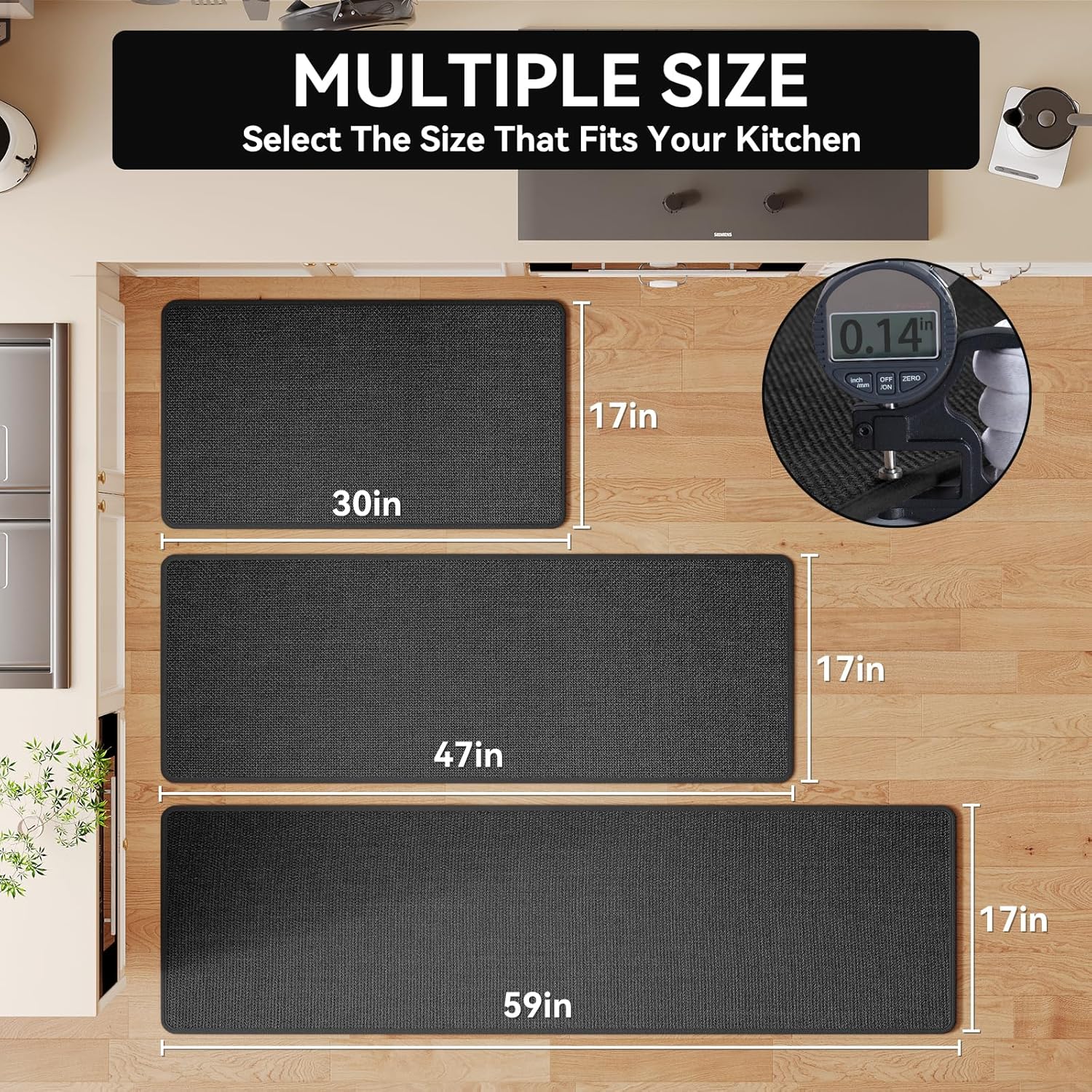 - Multi-purpose: Kitchen mats for floor widely used for home decor, in front of sink, indoor front welcome mat, living room, back doors etc.We provide two sizes to choose from: 17"x30", 17x47",17x59"