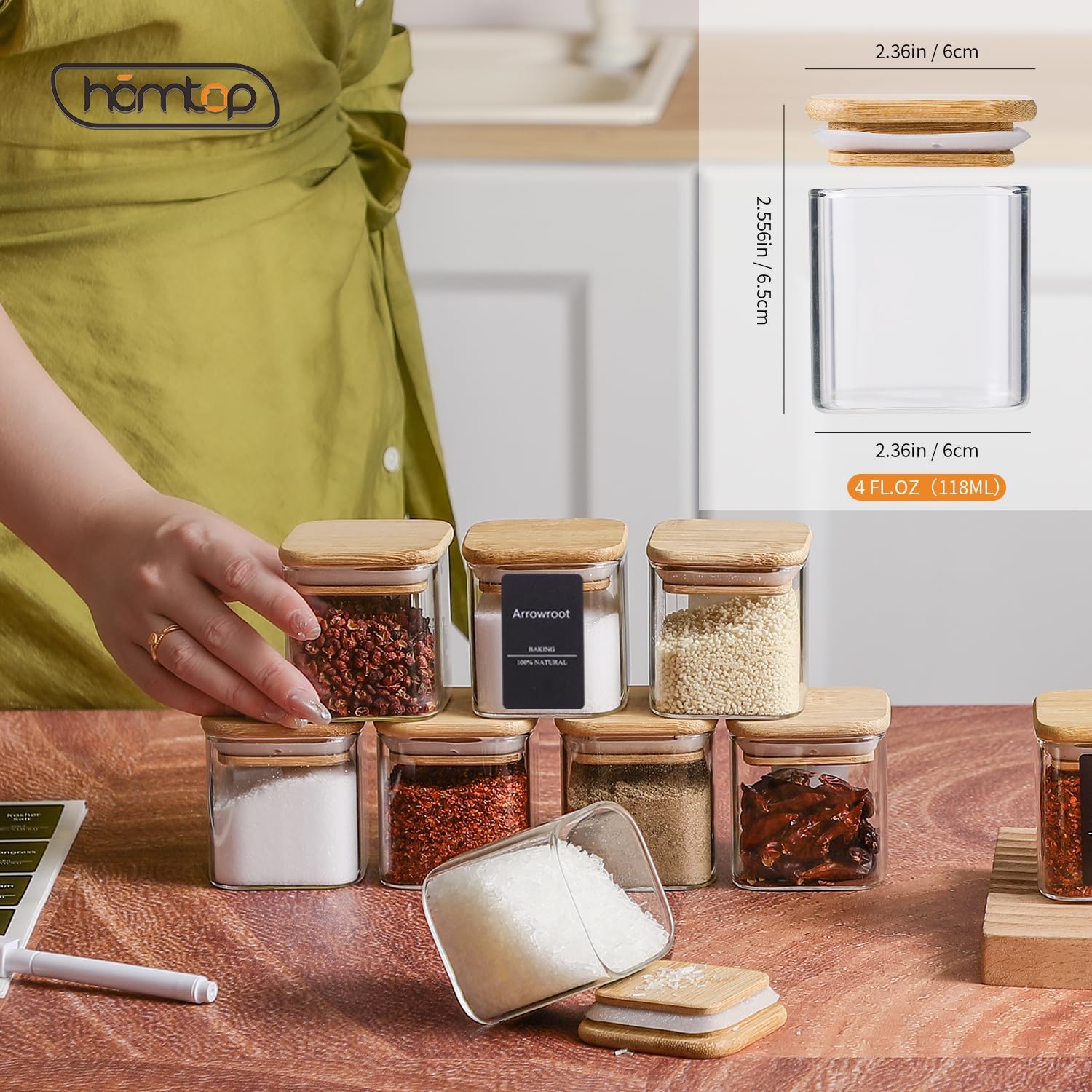 24Pcs 4oz Spice Jars with 275 Labels, Small Seasoning Glass Container Empty Organizer with Bamboo Lid Set for Pepper, Salt, Sugar