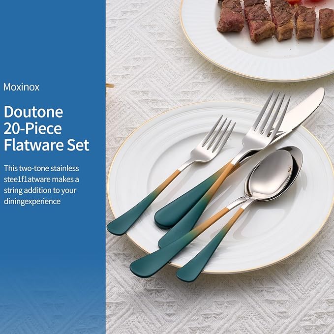 - 【20-Piece 18/0 Silverware Set for 4】- 20 piece 18/0 colorful silverware set , Includes dinner knife set of 4, dinner forks set of 4, dinner spoons set of 4, salad forks set of 4, teaspoons set of 4, perfect silverware set for 4 people family.