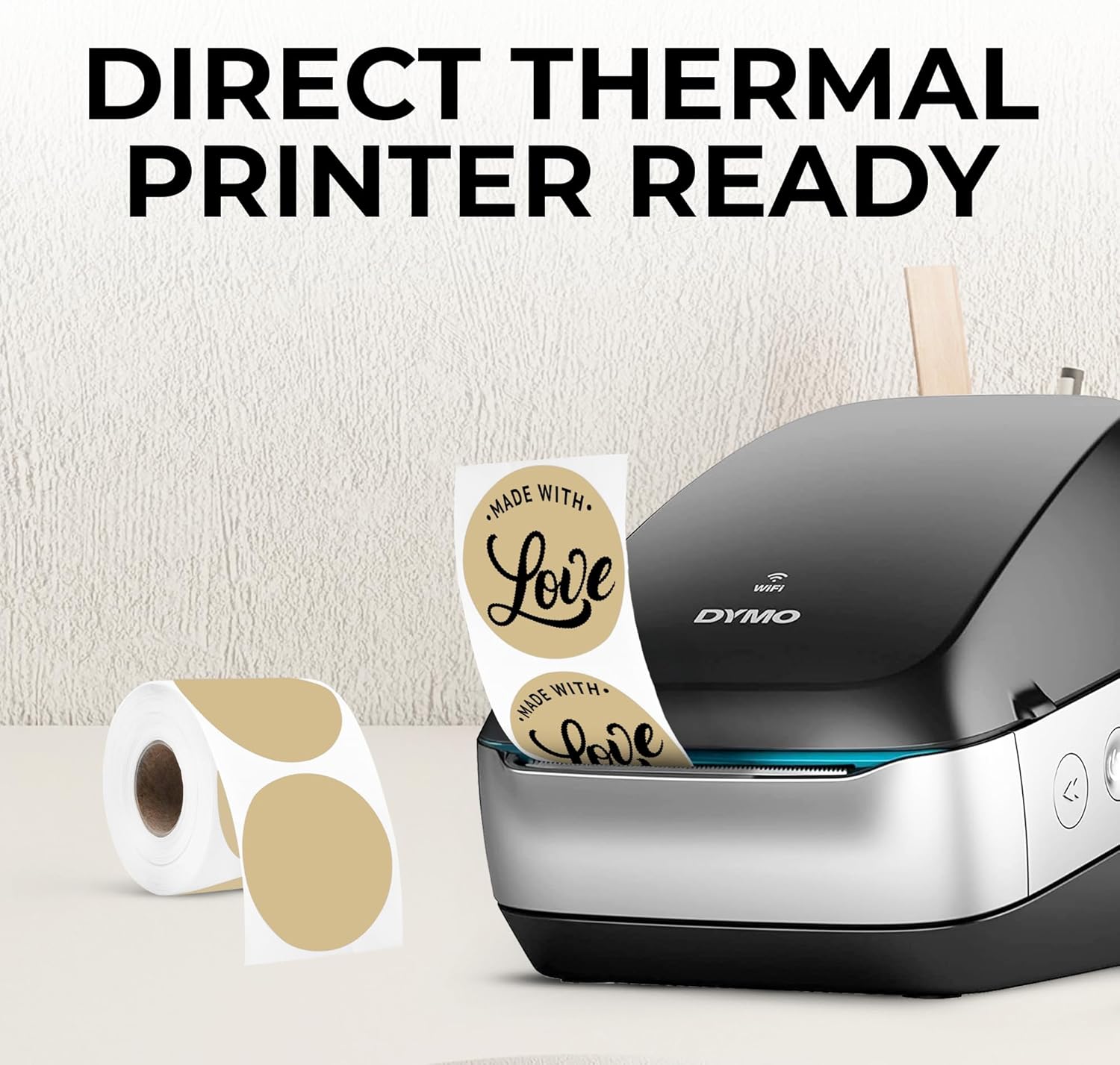 Perco Light Brown 2-inch Round Circle Thermal Sticker Labels - 300 Labels/Roll, Direct Thermal Printer Compatible, Permanent Adhesive, Vibrant Colors, Strong Hold, Perforated for Easy Use—Made in USA