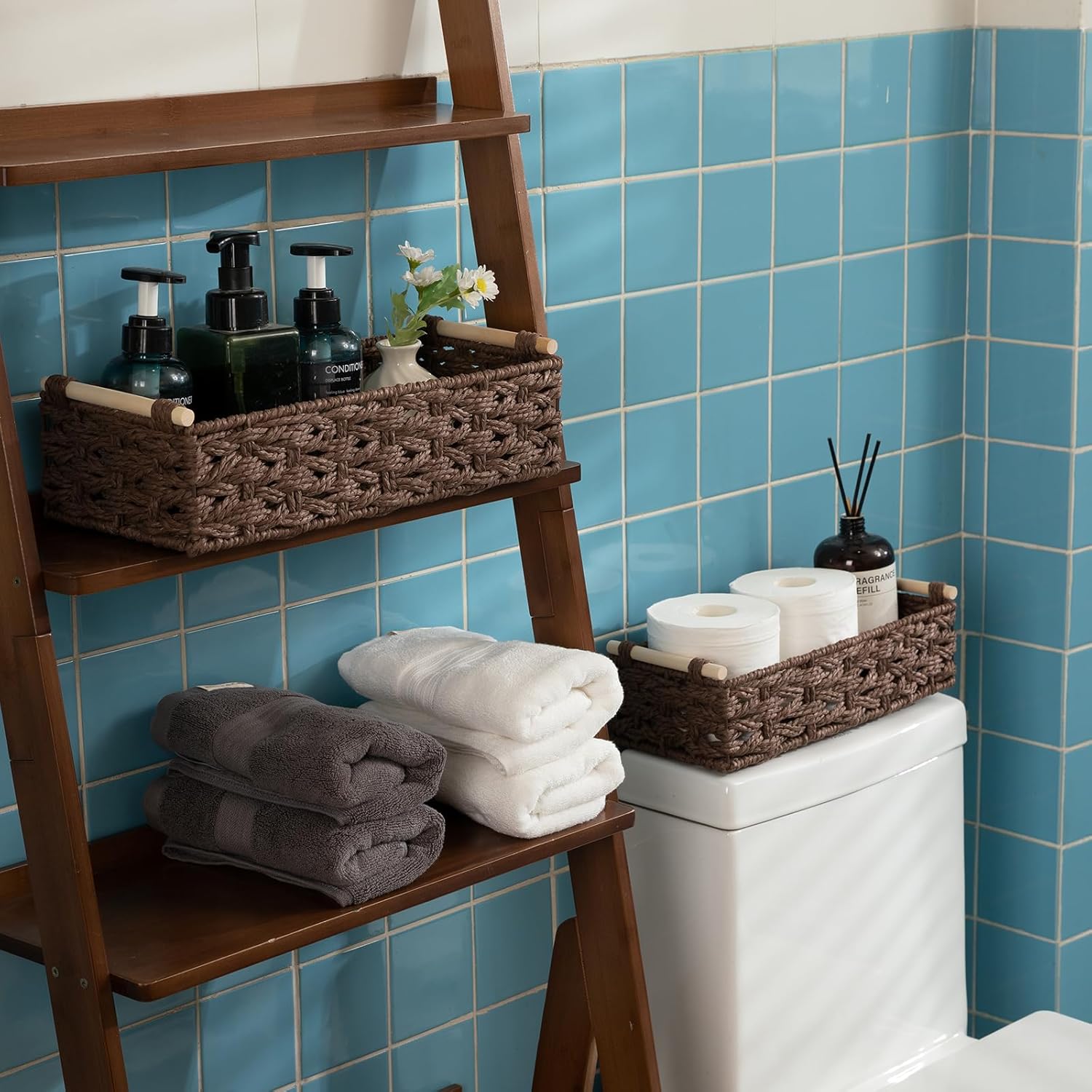 OIAHOMY Toilet Paper Baskets Handmade Paper Rope Decorative Wicker Storage Tank Shelf Cabinet Organizer for Bathroom Home, Set of 2, Brown