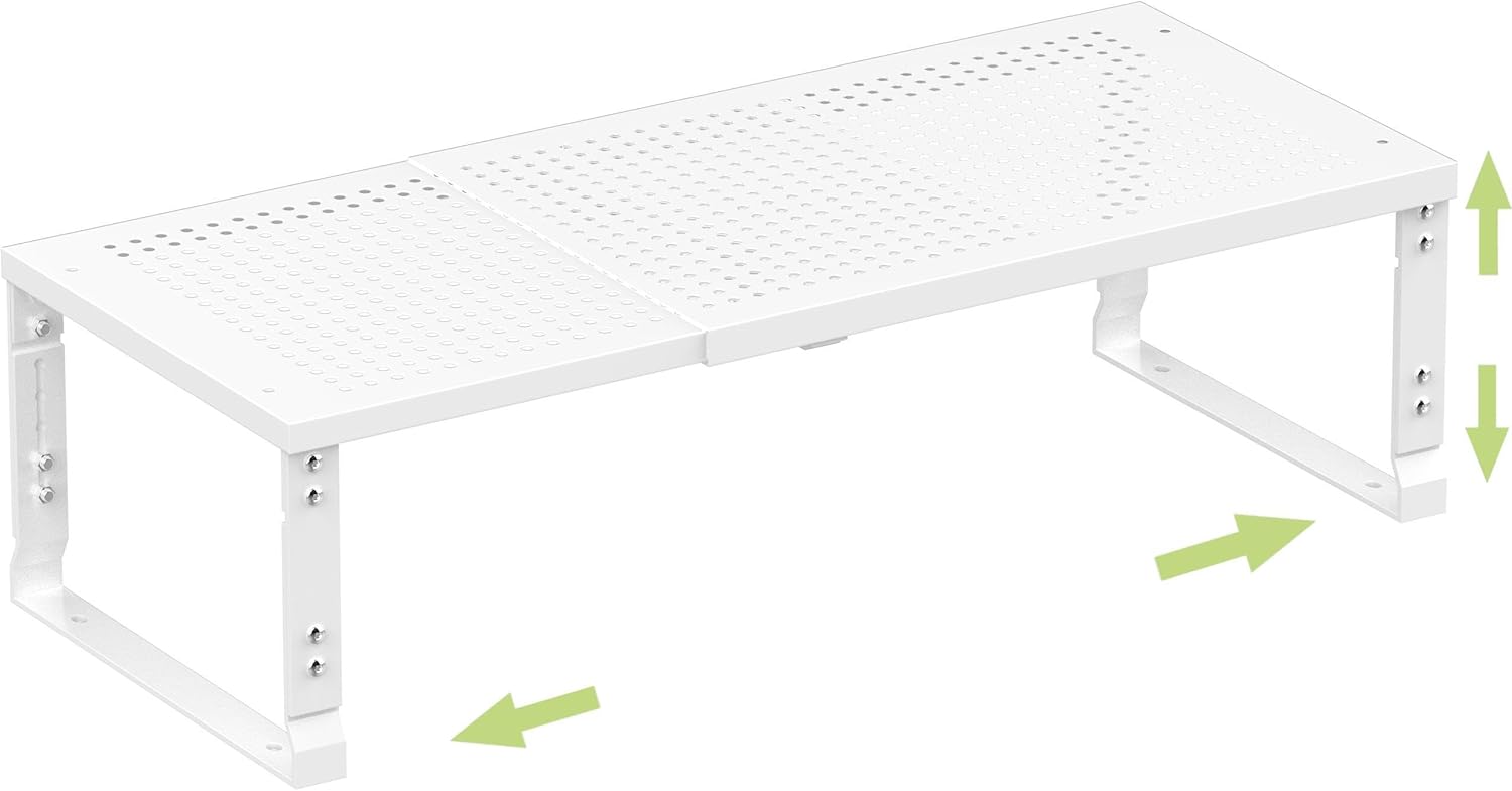 Heavy-Duty Adjustable Metal Shelf Organizer - Expandable & Stackable Pantry Storage Rack for Kitchen, Bathroom, RV, Cabinets(1 Pack/White, Large)