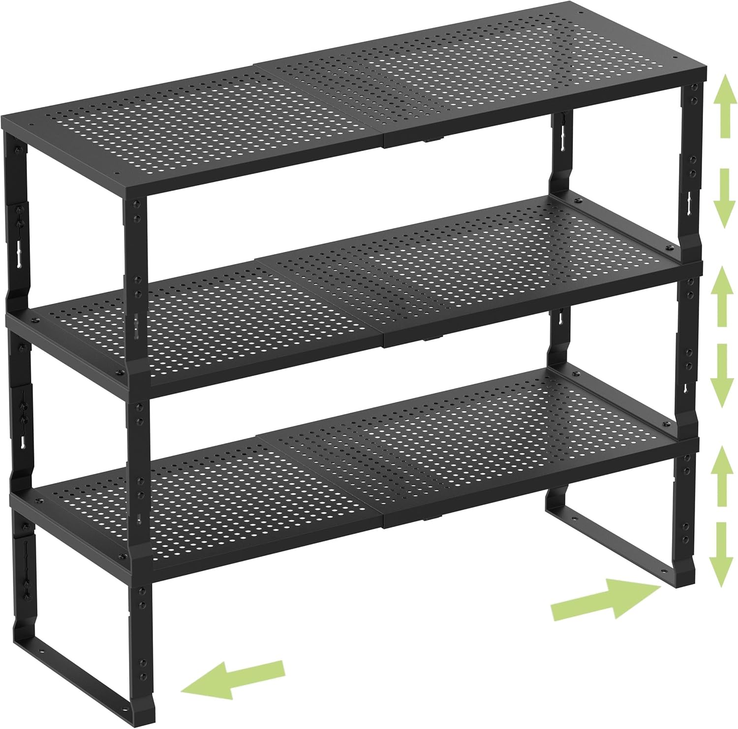 Heavy-Duty Adjustable Metal Shelf Organizer - Expandable & Stackable Pantry Storage Rack for Kitchen, Bathroom, RV, Cabinets(3 Packs/Black, Medium)