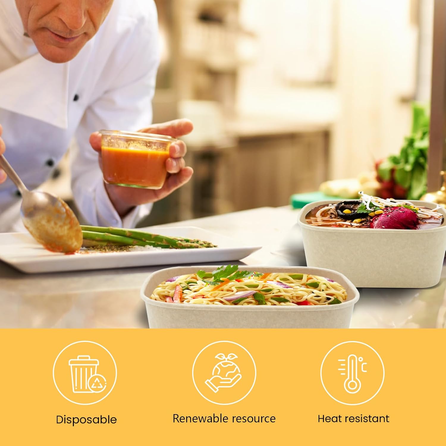 - Strong and Durable: Designed to be strong and durable, they are resistant to oil, bending and knife cuts. Kraft paper hot soup bowls can also be used for microwave heating and refrigeration