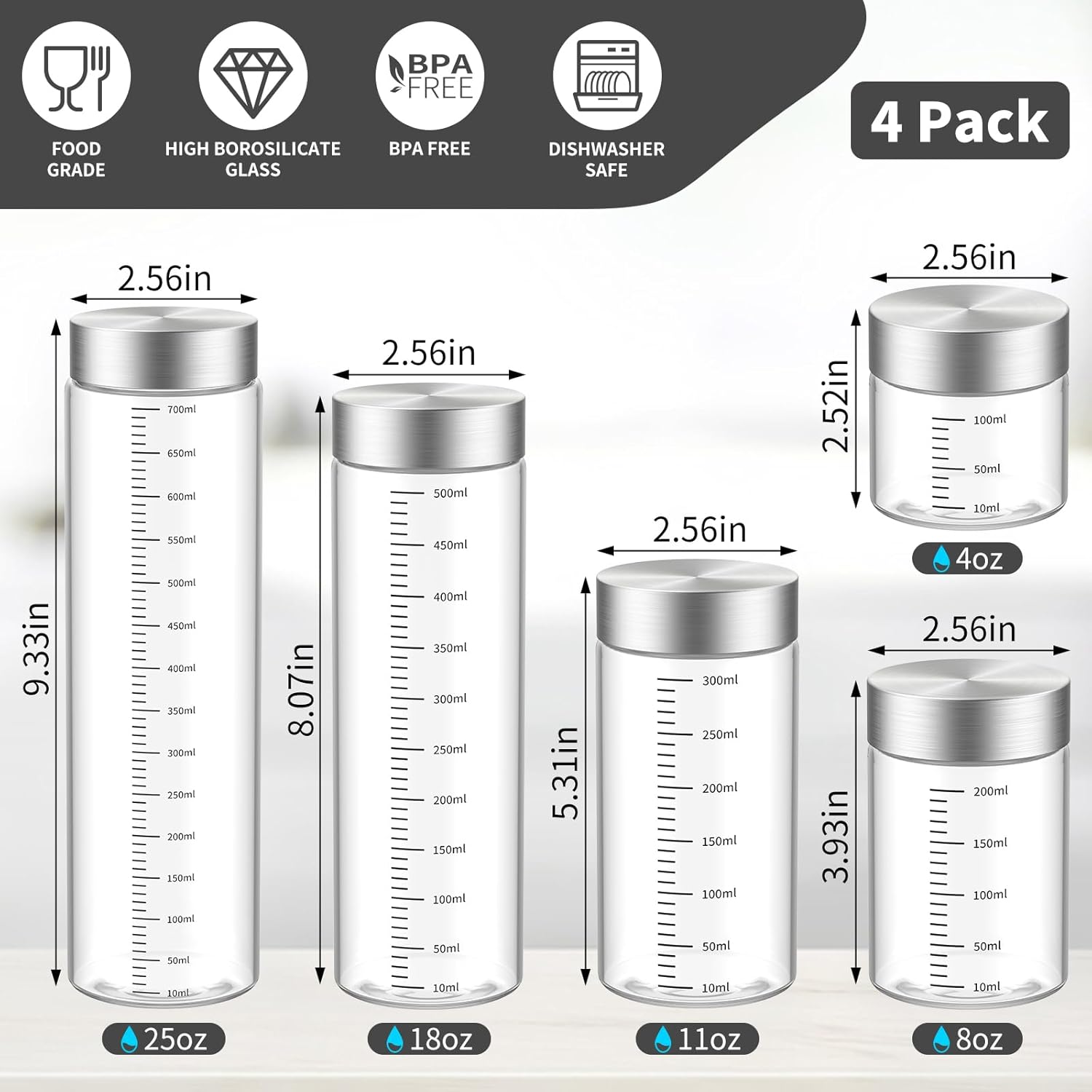 - 【25oz High-quality Borosilicate Glass Bottles】These glass jars are made of borosilicate glass, which is more transparent, thicker, and of better quality than ordinary glass. This thick and transparent glass bottle can withstand sudden changes in temperature difference ranging from -4°F to 300°F without breaking. Note: These glass bottles can be placed in the refrigerator for refrigeration and preservation, but it is not recommended to put them in the freezer compartment for freezing