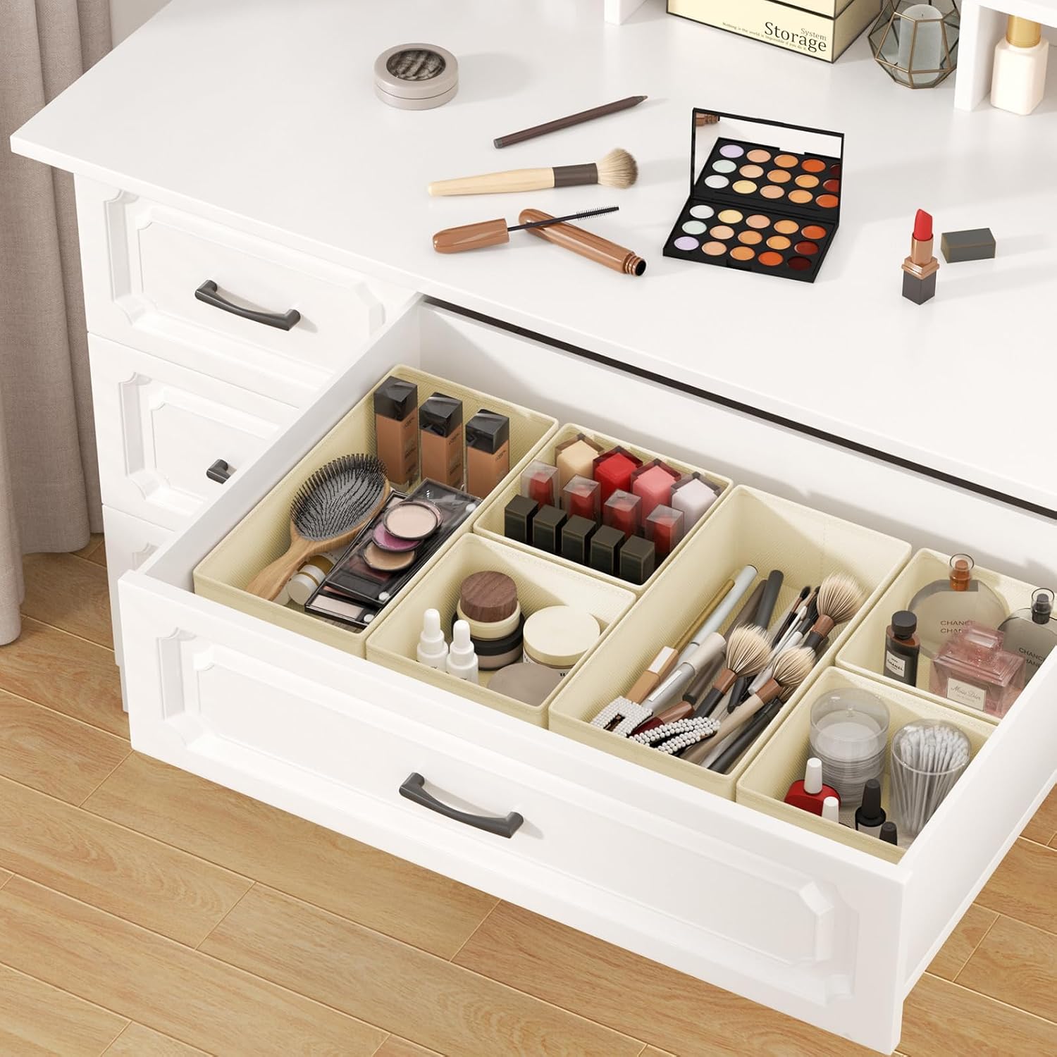 - What's Include: These Non-Woven fabric drawer organizer Includes 4 large square Drawer organizer bins,4 medium rectangular organizer bins and 4 small square organizer bins that can hold a variety of personal items. These Fabric foldable dresser storage fits all.
