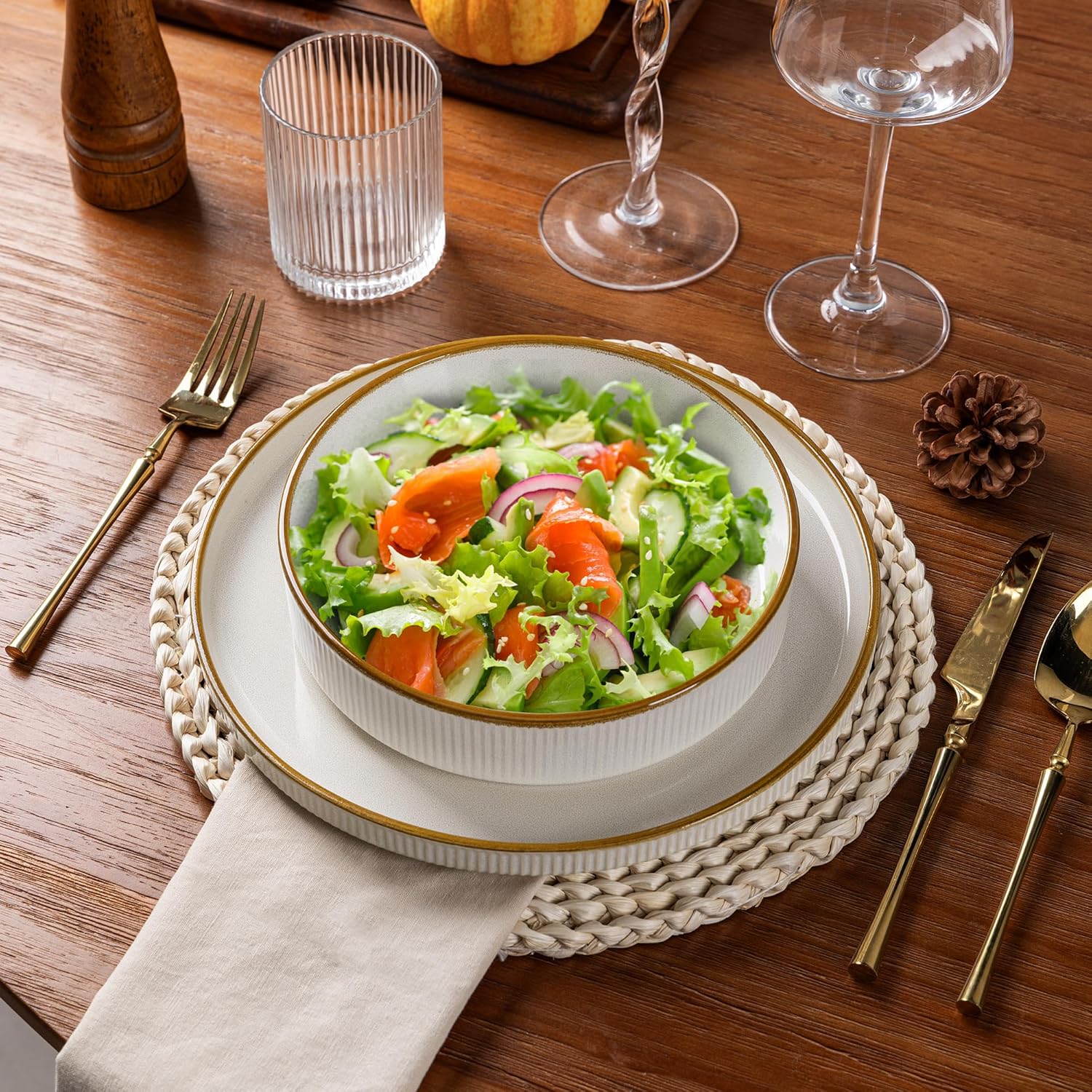 - Healthy, Lead-Free & Chip-Resistant: Crafted from premium, double-fired ceramic, this dinnerware is lead-free and cadmium-free, ensuring no harmful chemicals leach into your food. The durable stoneware construction makes it exceptionally chip-resistant and built for long-lasting daily use.