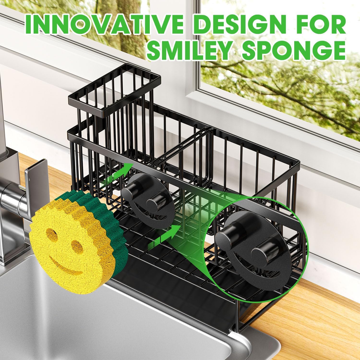 - 【Combined With Smiley Design】 Unlike basic sponge holders, the Amawarm sink organizer features an upgraded smiley face style for extra storage. It perfectly fits smiley sponges, offering both personality and practicality.