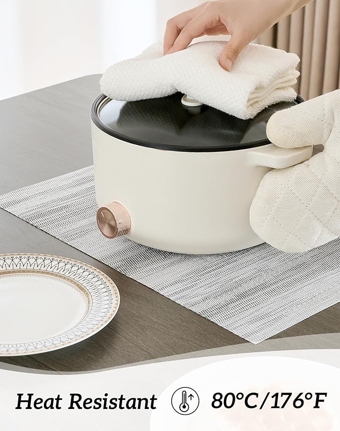 - Protects Your Table: Keep your table safe from scratches and spills with our heat-resistant placemats. They can withstand temperatures up to 176℉(80℃) and help keep food warm. Add style to your dining setting while ensuring table protection