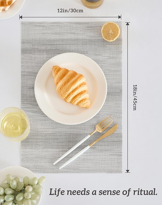 - Elegant and Practical Design: With a luxurious vinyl woven texture, precision cutting, and heat-trimmed edges, our double-sided placemats offer a sophisticated and practical solution. They provide a non-slip surface, resist fading, and are easy to clean, elevating your dining experience