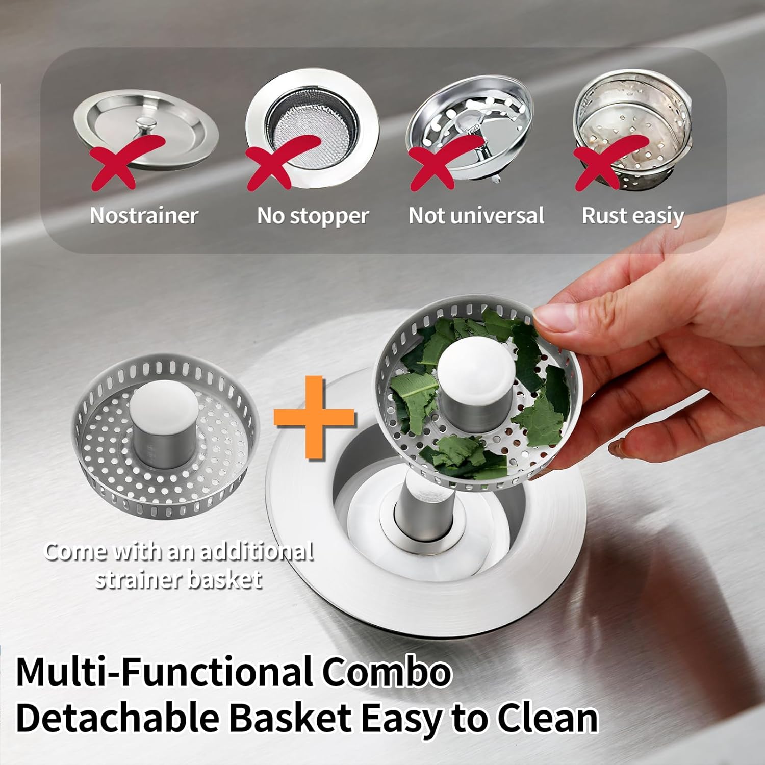 - Universal Fit for 3-1/2 Inch Drains – Designed to fit most standard U.S. sink drain holes Quick and tool-free installation—just plug and use!