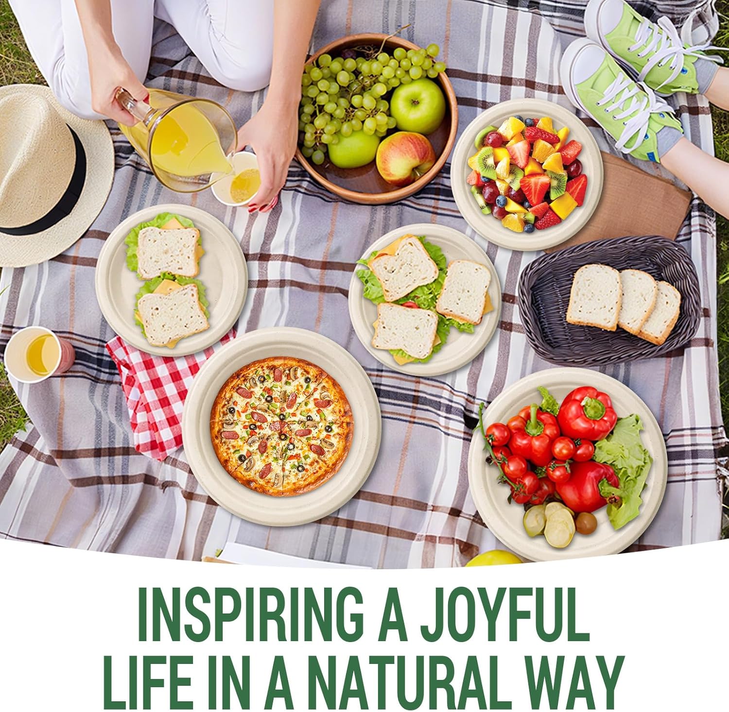 - Eco-Friendly Choice: Made from recycled/repurposed bagasse and bamboo, these paper plates are 100% biodegradable and suitable for composting for easy disposal.