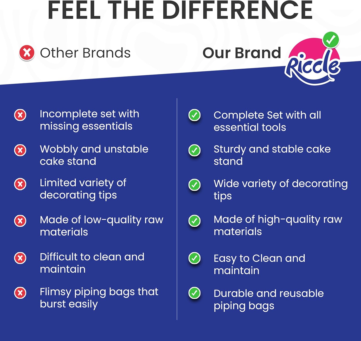 Riccle 94 pcs Cake Decorating Kit with Cake Turntable - Includes 50pcs 12 Inch Disposable + 2 Reusable Piping Bags and Tips Set, 24 Icing Piping Tips, 2 Spatulas, 3 Icing Comb Scraper, 6 Cake Liners