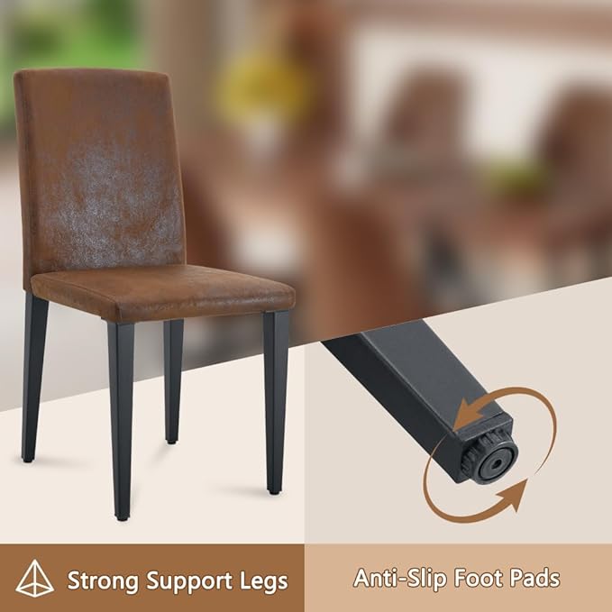 - Ergonomic Comfort: The kitchen table chairs set of 6 includes PU leather seats filled with high‑density foam for softness and breathability. Metal chair legs provide stability and adjustable feet ensure balance, making this dining table chairs set of 6 perfect for long meals