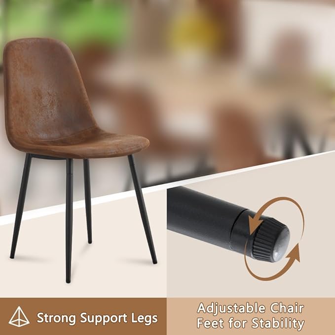 - Ergonomic Comfort: The kitchen table chairs set of 6 includes suede seats filled with high‑density foam for softness and breathability. Metal chair legs provide stability and adjustable feet ensure balance, making this dining table chairs set of 6 perfect for long meals