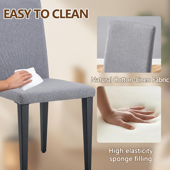 - Ergonomic Comfort: The kitchen table chairs set of 6 includes linen fabric leather seats filled with high‑density foam for softness and breathability. Metal chair legs provide stability and adjustable feet ensure balance, making this dining table chairs set of 6 perfect for long meals
