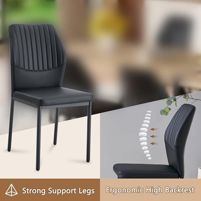 - Ergonomic Comfort: The kitchen table chairs set of 6 includes PU leather seats filled with high‑density foam for softness and breathability. Metal chair legs provide stability and adjustable feet ensure balance, making this dining table chairs set of 6 perfect for long meals